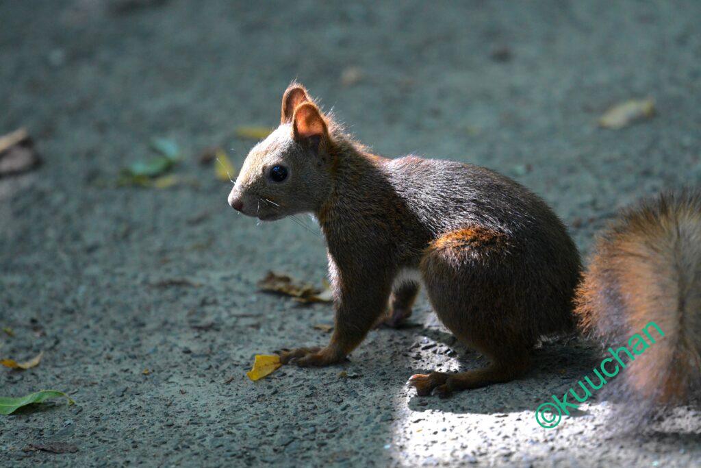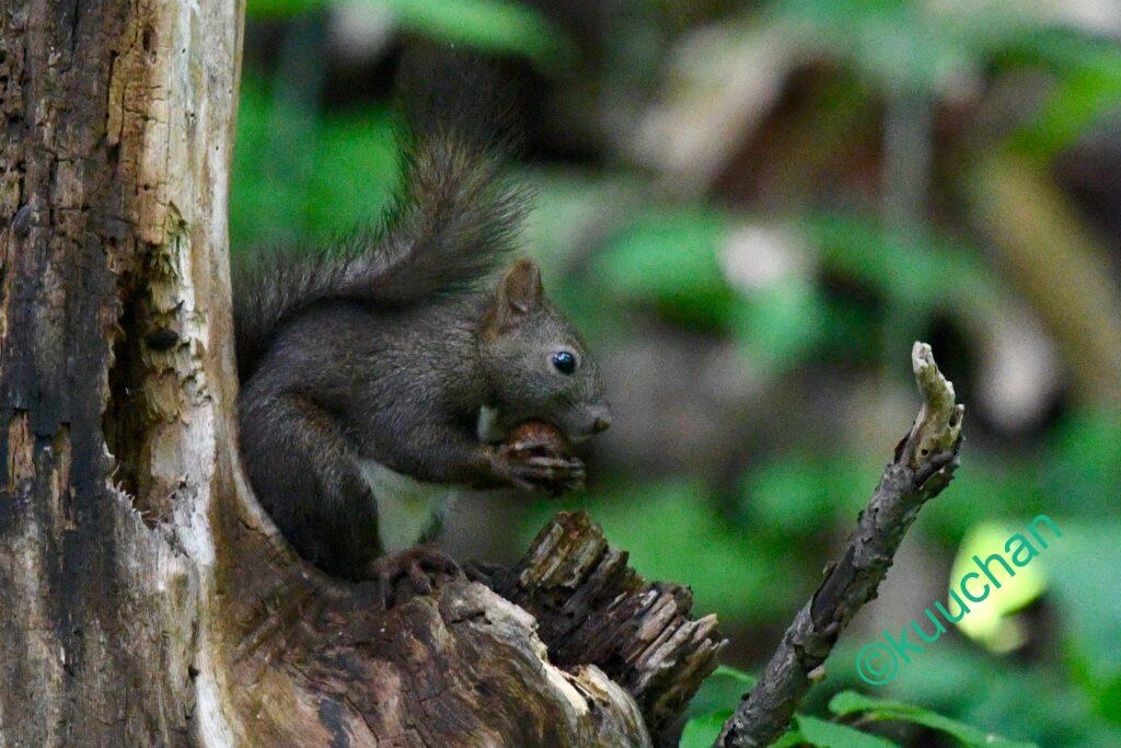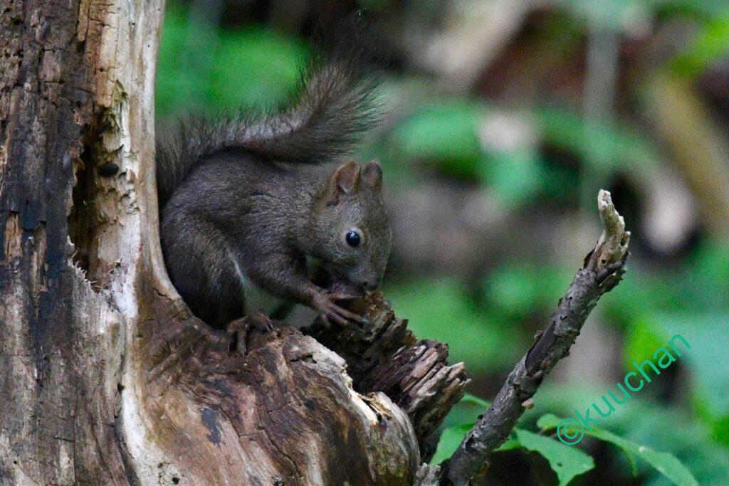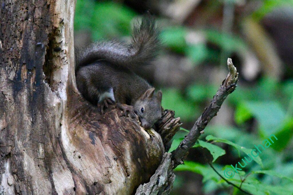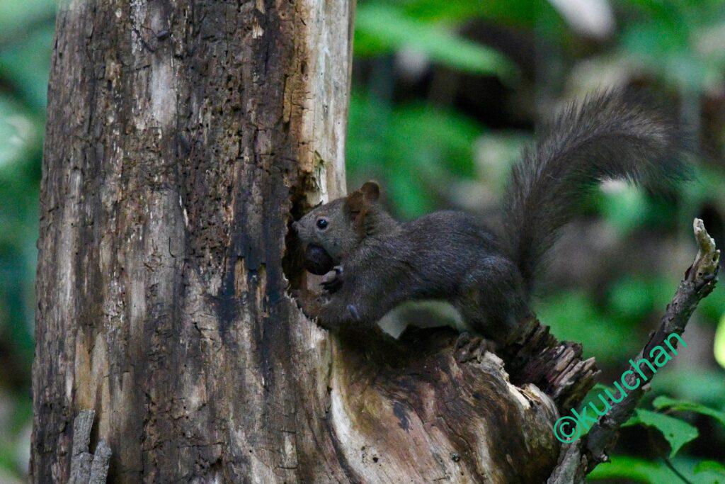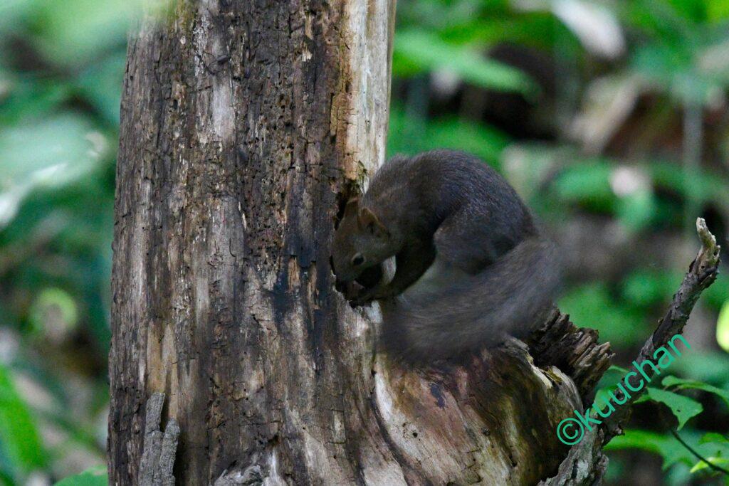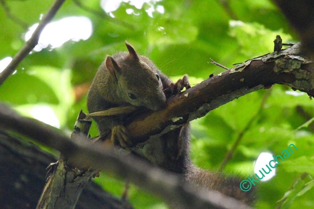 今日出会ったリスは、キノコのようなものを食べていました。おいしい?