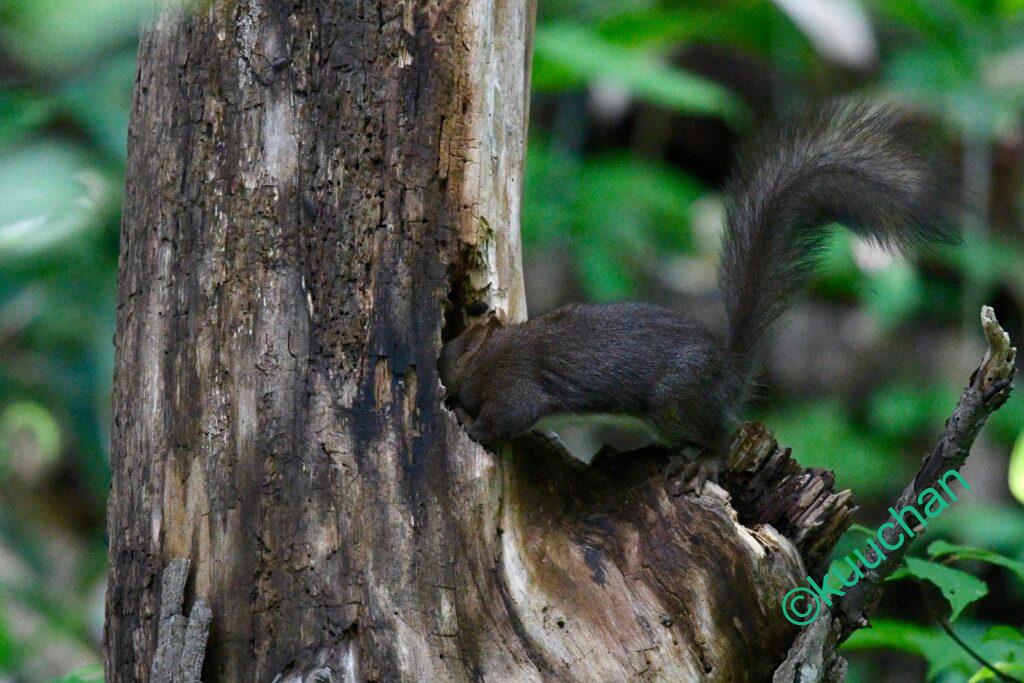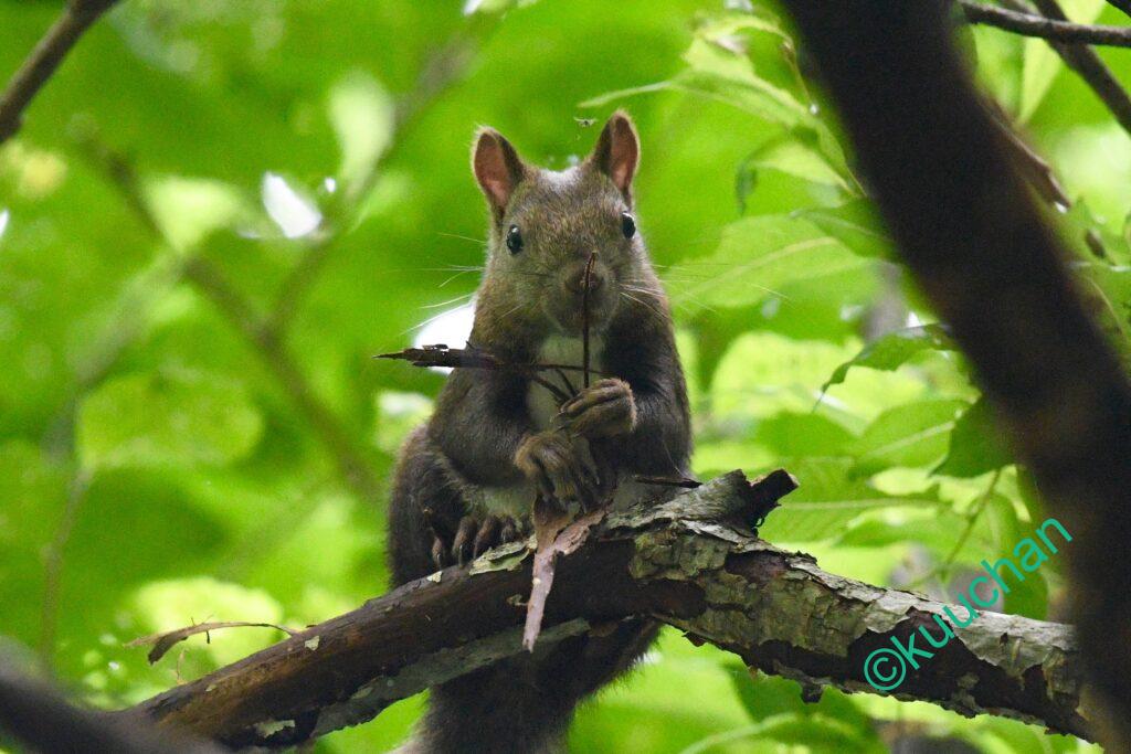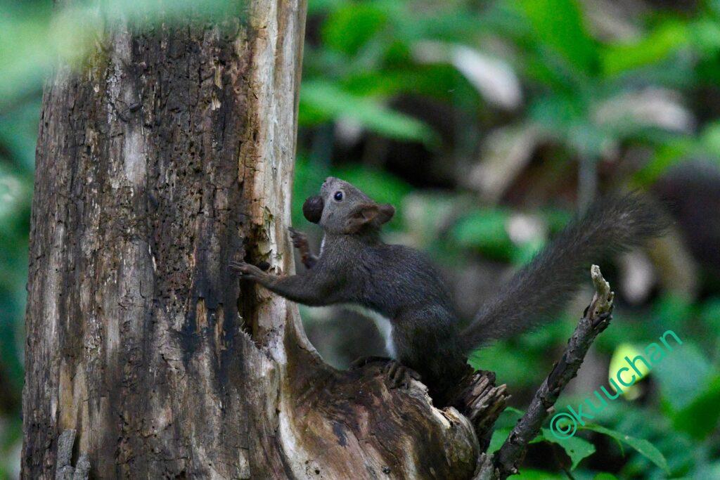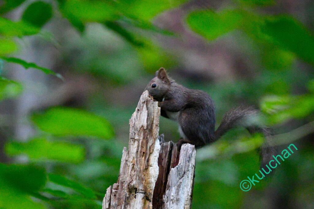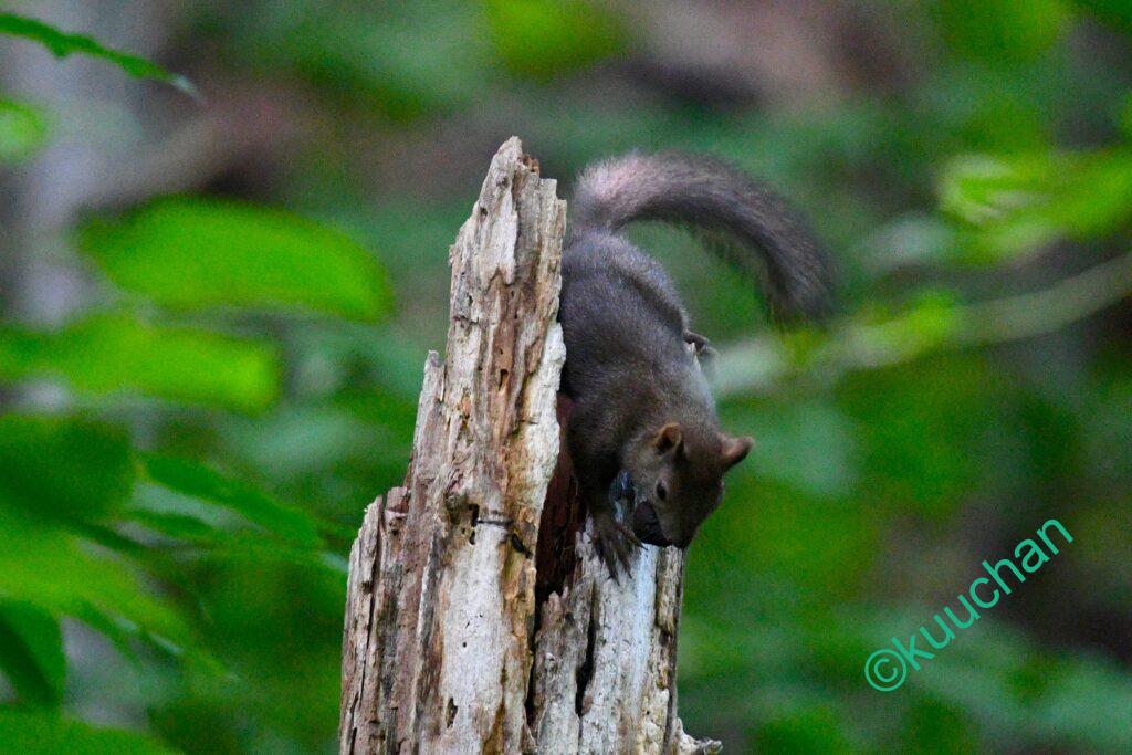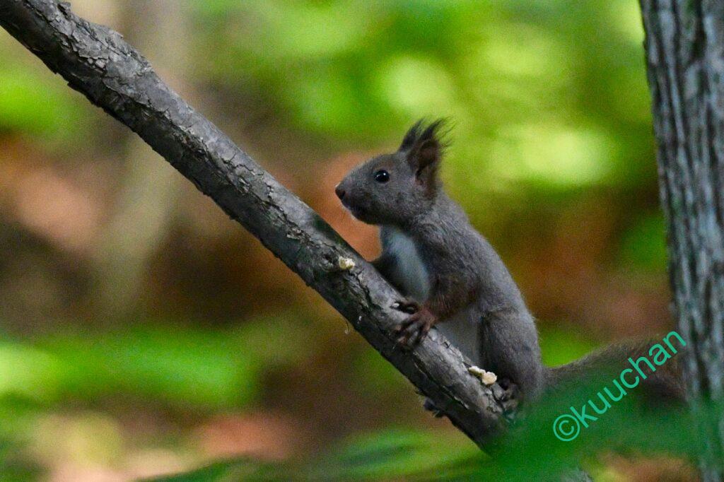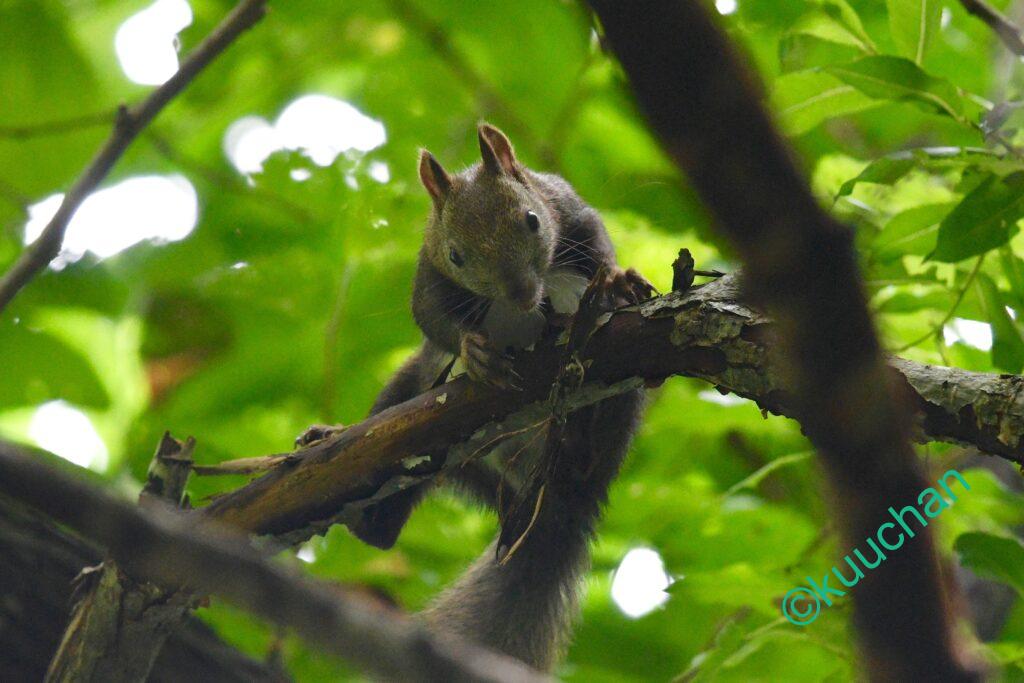 今日出会ったリスは、キノコのようなものを食べていました。おいしい?