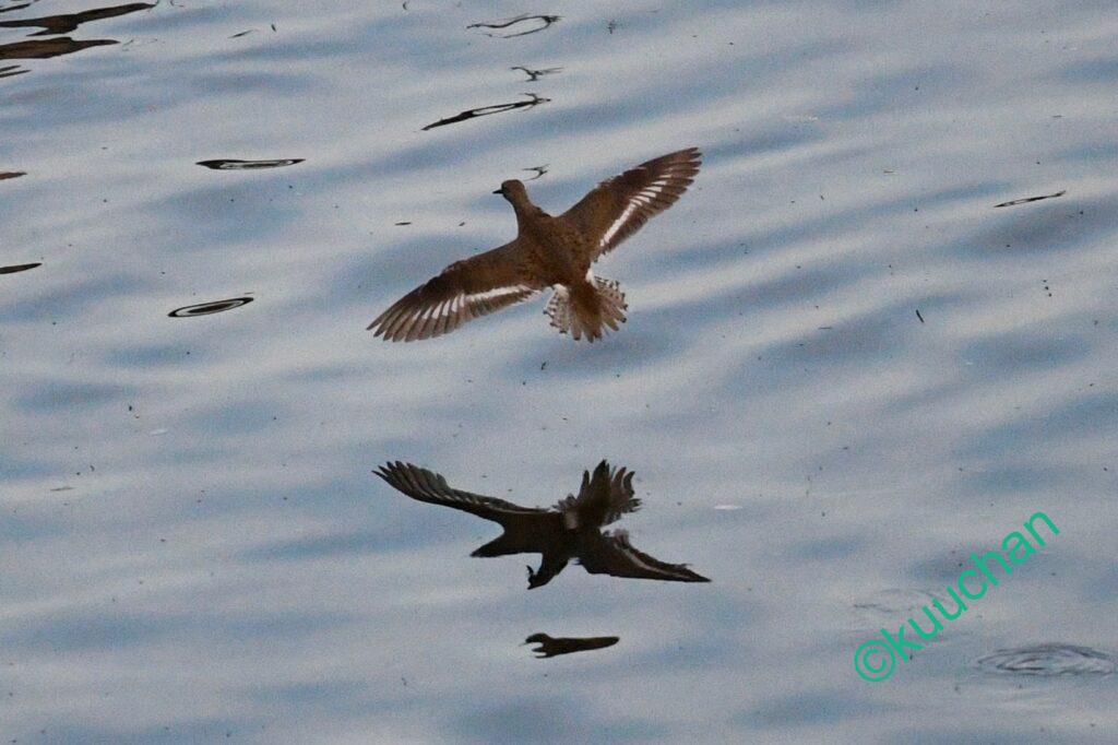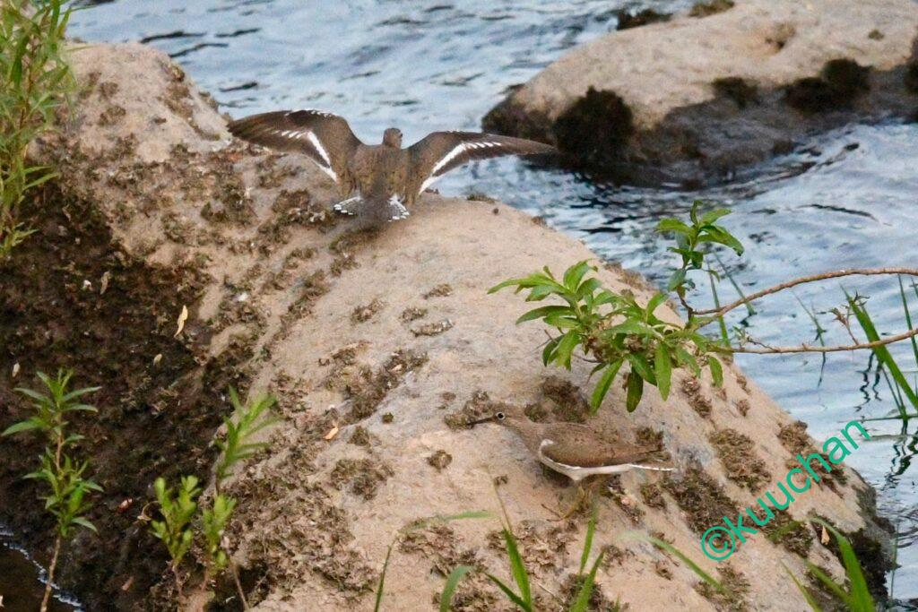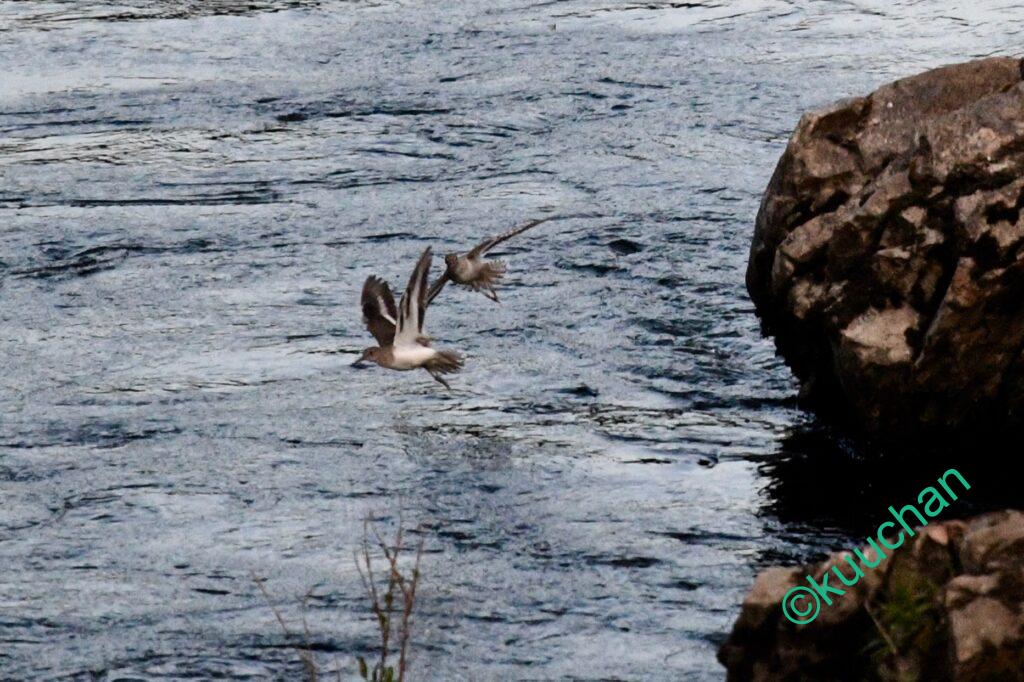 帰り道、今日もイソシギの声がして下を覗くと、二羽で追いかけっこをしていました。