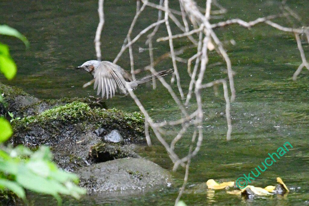 木の葉が生い茂り、笹薮に阻まれて川岸がよく見えないけれど、しゃがんで木の枝の間から覗くと、いた!!