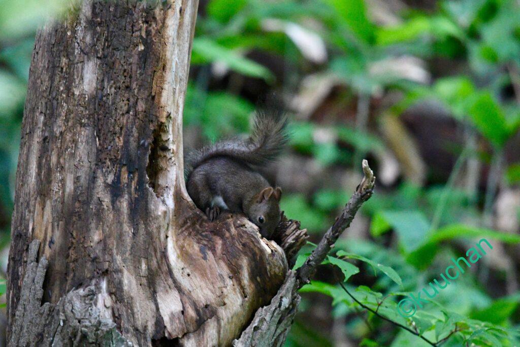 今回出会ったのは一匹でしたが、あちこちに気配がありましたから、あの母リスや兄弟たちも近くにいたのかもしれません。
