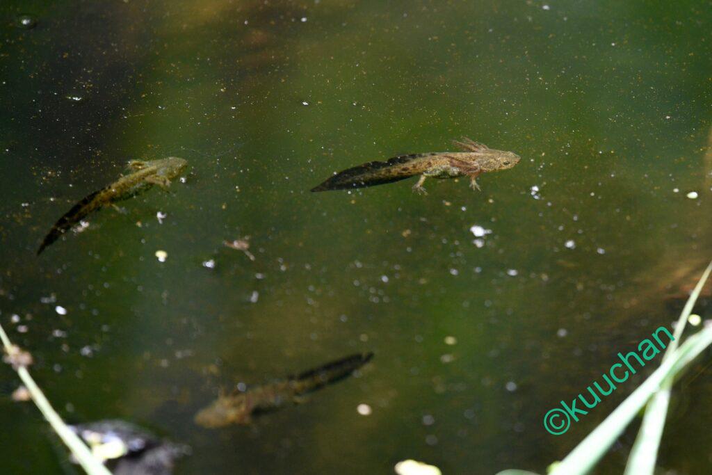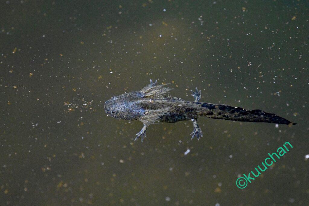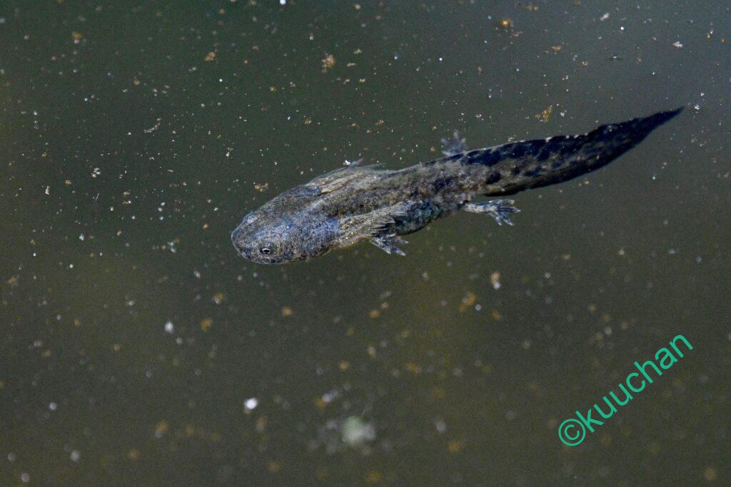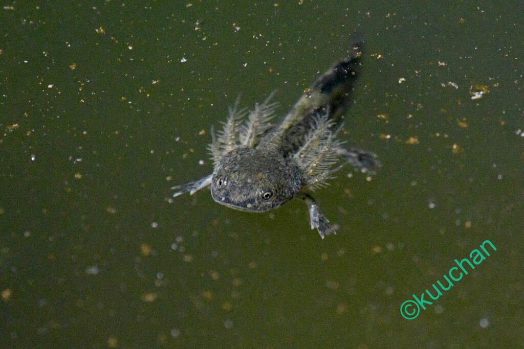 さて、この池の主であるサンショウウオですが、後ろ足がしっかりしてきたものの、前回とさほど変化がない様子。