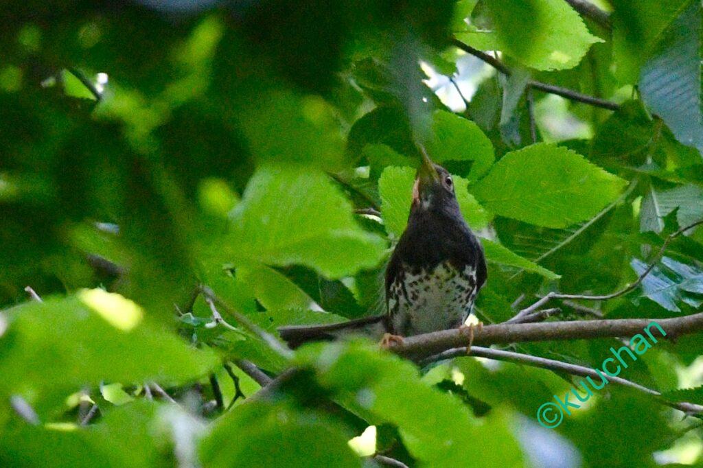 こんな風に林内で鳴くのは既婚者なのだとか。独身のオスはもっと高いところで声を張り上げて鳴きます。