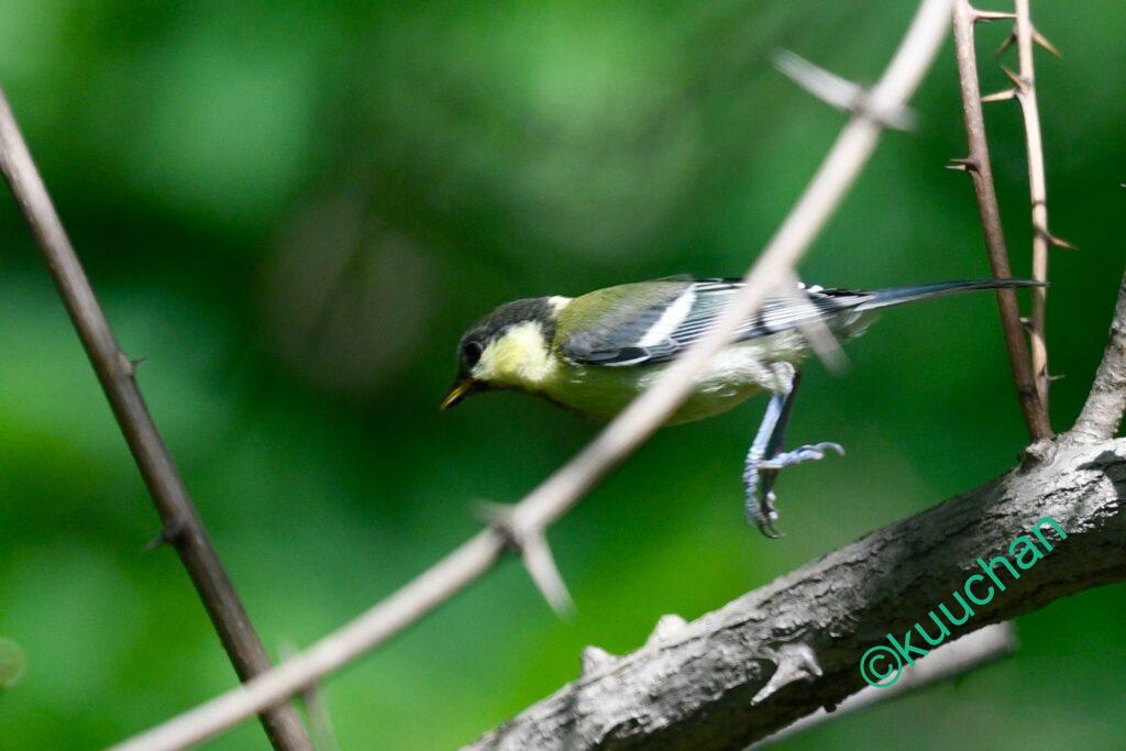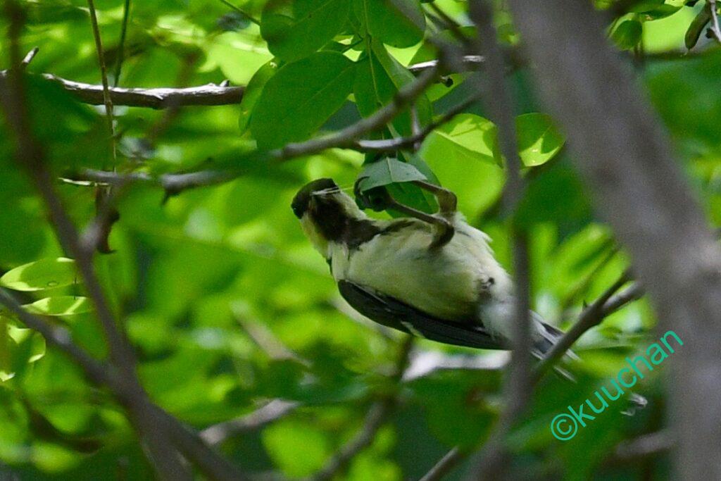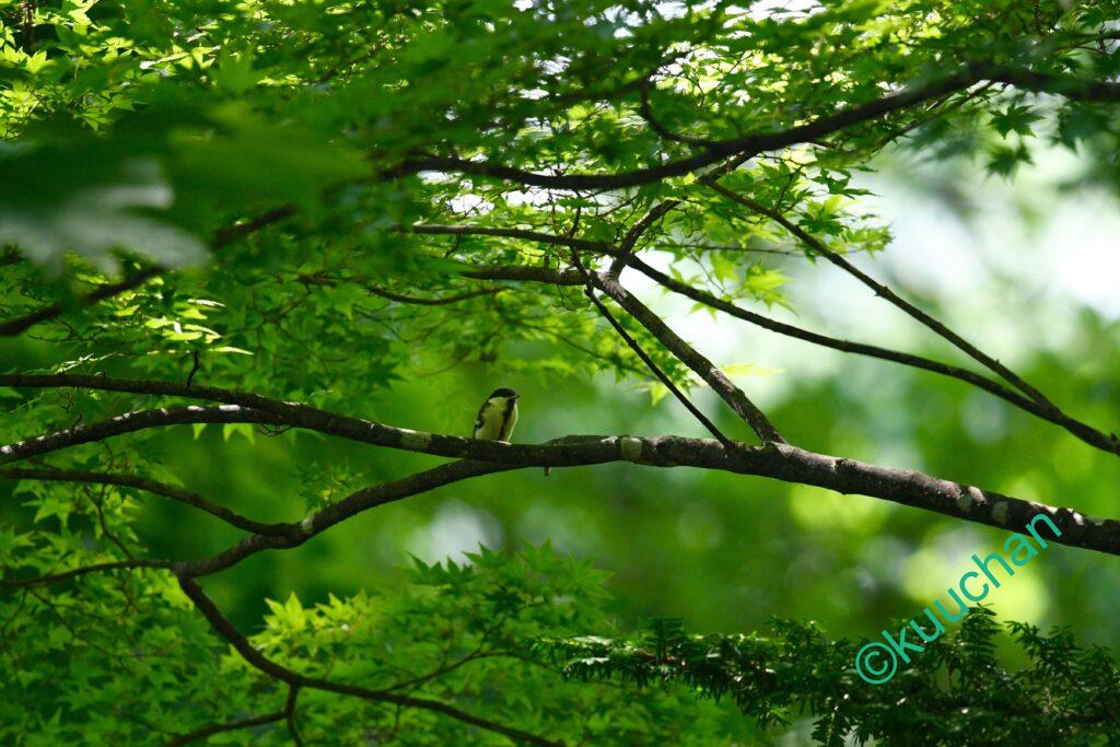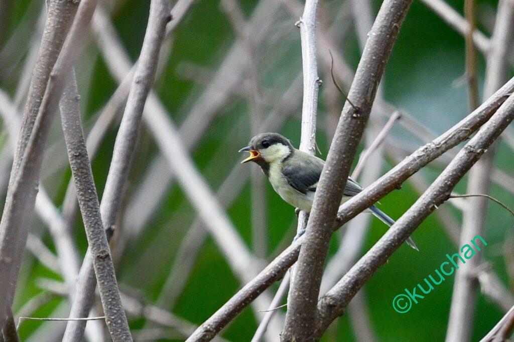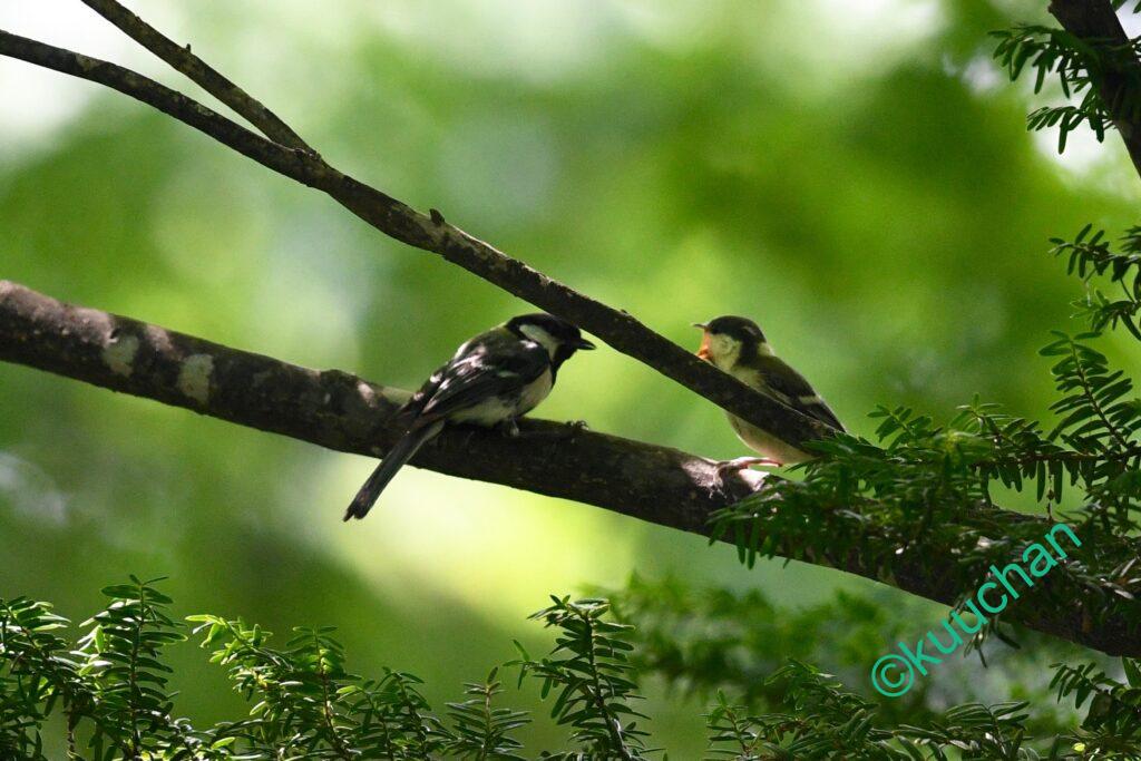 そして深い緑の木陰で、シジュウカラの幼鳥がじっと親を待っていました。