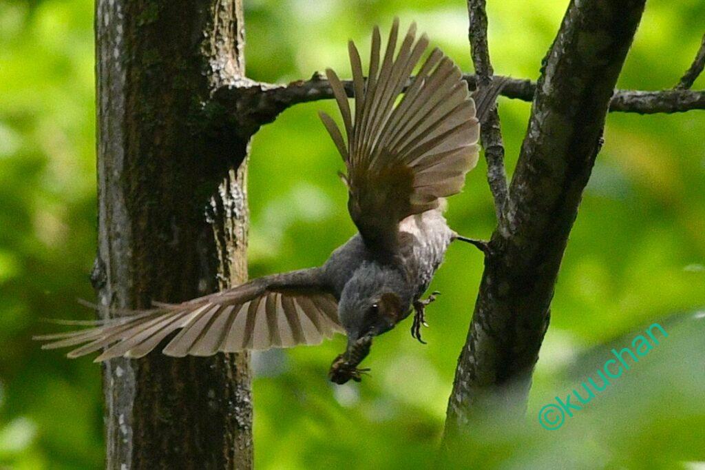 今日は糸を引っ張っているみたい。蛾の幼虫を獲っているんですね。