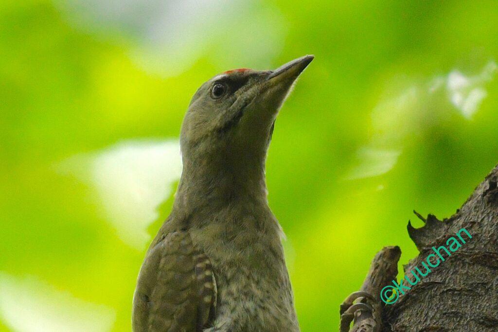 ところが幼鳥は、頭のてっぺん全体が赤いのです。