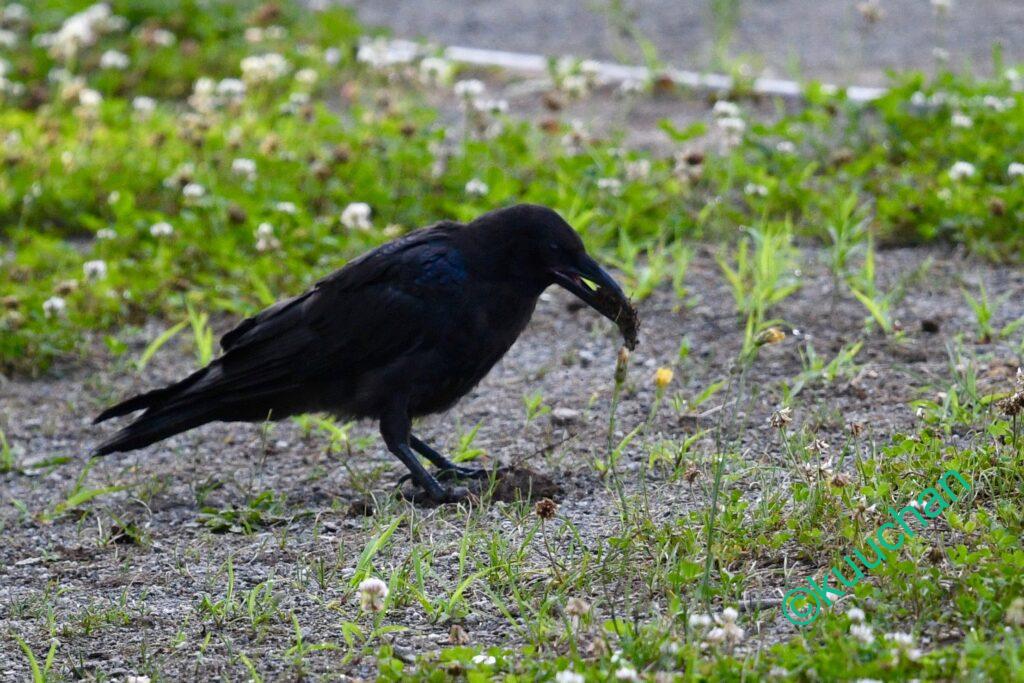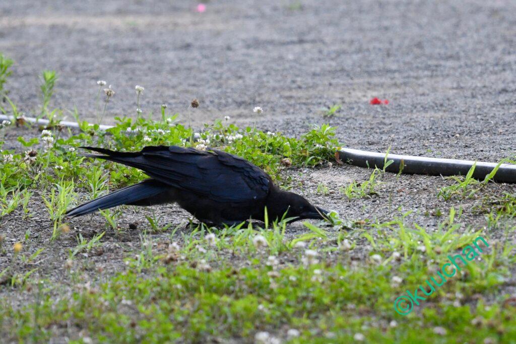 また、冬に川で魚捕りをしていたカラスや、子育て中、どこからか持ってきたドックッフードを水たまりに浸して、ヒナのための離乳食を作っていたカラスにも出会ったことがあります。