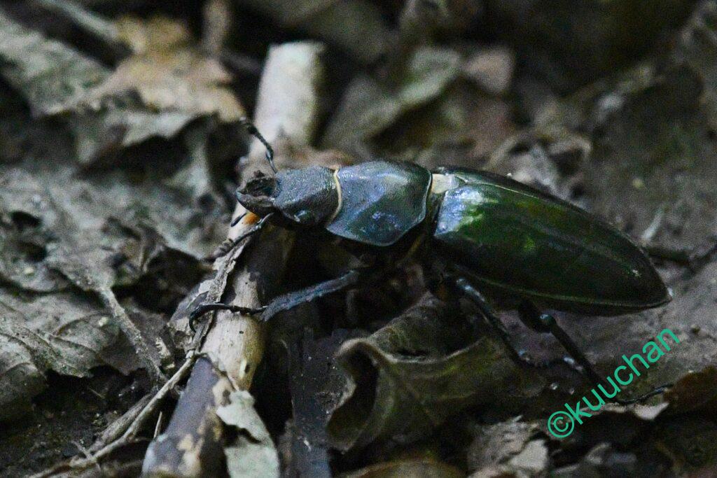 メスのクワガタが歩いていました。大きくて立派なメス。