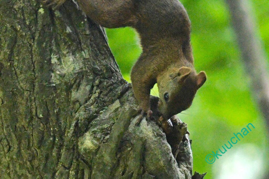 なにより動き方がまだ幼く、近くでカラスの声などが聞こえるとピタッと木に張り付いて隠れたりもします。
