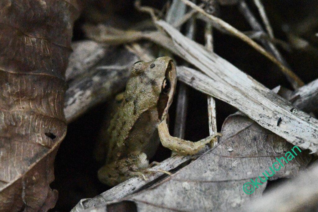 あれ? よく見ると、とても小さなエゾアカガエルが混じっていました。