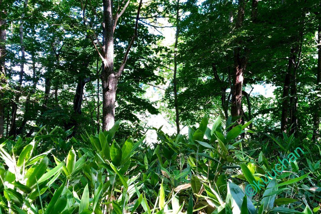 だがしかし、うっそうと茂る枝葉と笹に阻まれ見えない!! 全然見えない!! 涙。