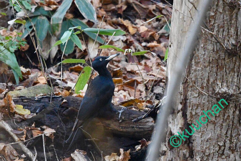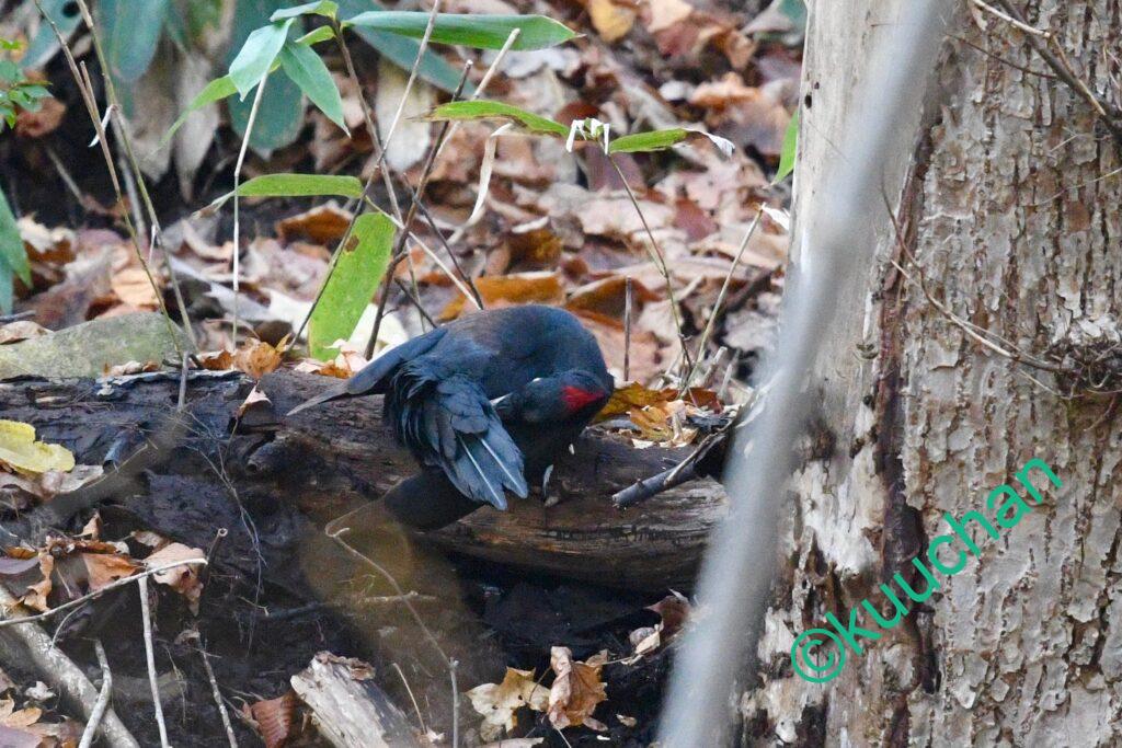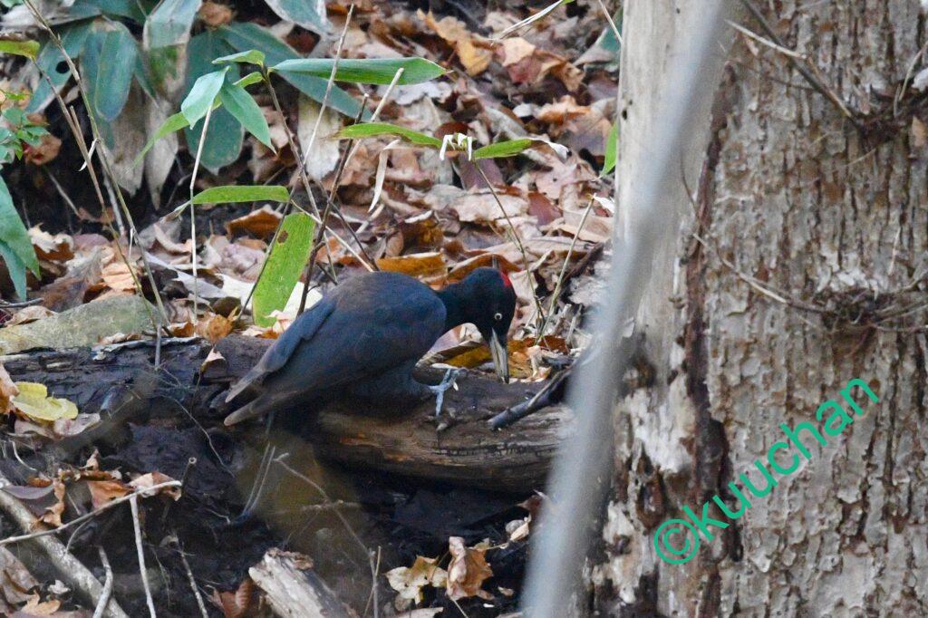 クマゲラはあまり人間を怖がらず、夢中で木を掘って虫を探しているときなどは、こちらが静かにしている限り、逃げることはないです。