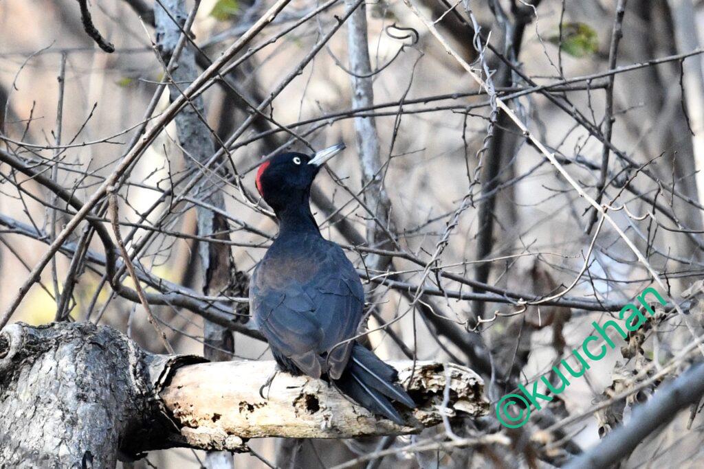 ちょっと遠いけれど、きれいなメスのクマゲラがいました。