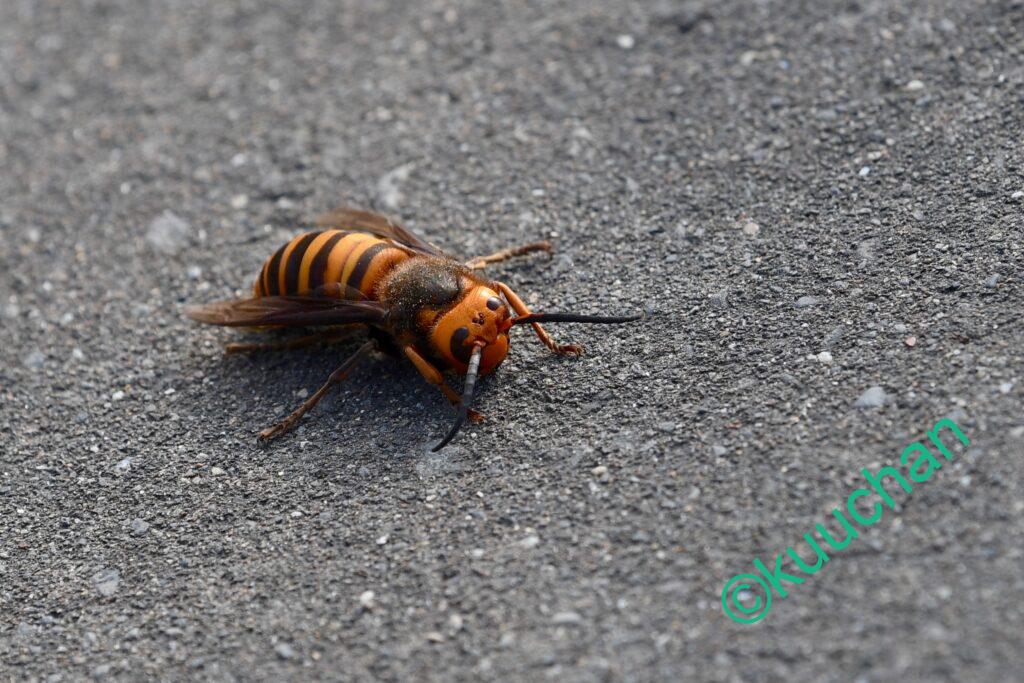 帰り道の道路では、弱っているオオスズメバチに出会いました。