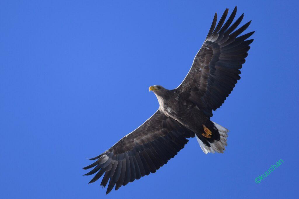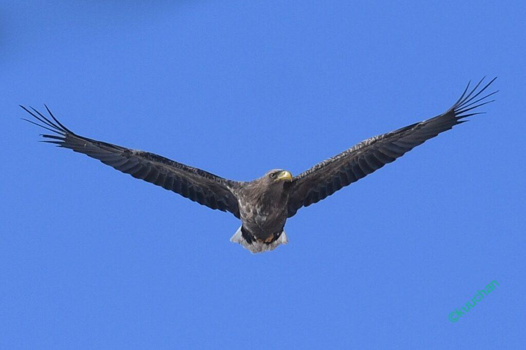 さて、そんなふうに尾羽が白いオジロワシですが、下の写真のように若鳥は尾羽が目立ちません。