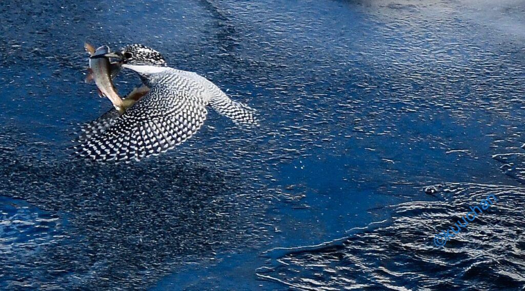 とまっていた枝を飛び出し、空中でホバリング、水に飛び込んで魚を捕らえるのです。(ホバリングしないこともあります)