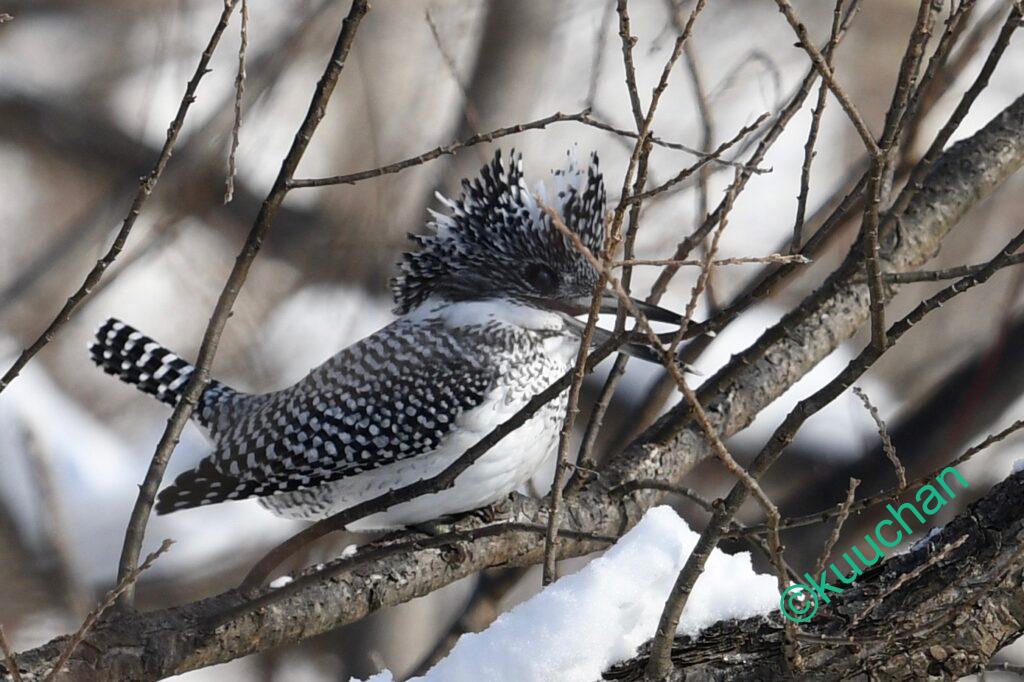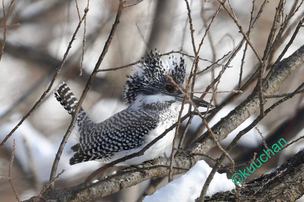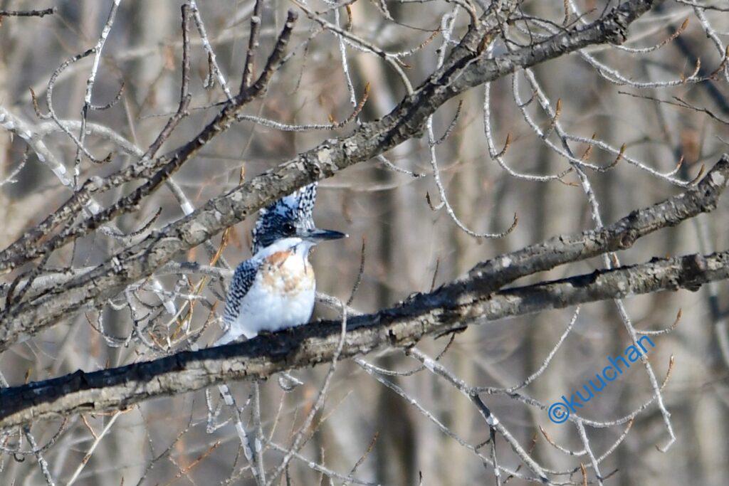 数年前まで、すぐ近くの支流にヤマセミやカワセミが巣を作るのに適した崖があって、子育ての様子を見る事ができたと聞いていますが、そこも洪水対策として工事が行われ、生き物に配慮した設計と言いながら、その後放っておかれたために柳がはびこり、雪捨て場の融雪剤が流れ込んだりもしたためダメになってしまったそうです。