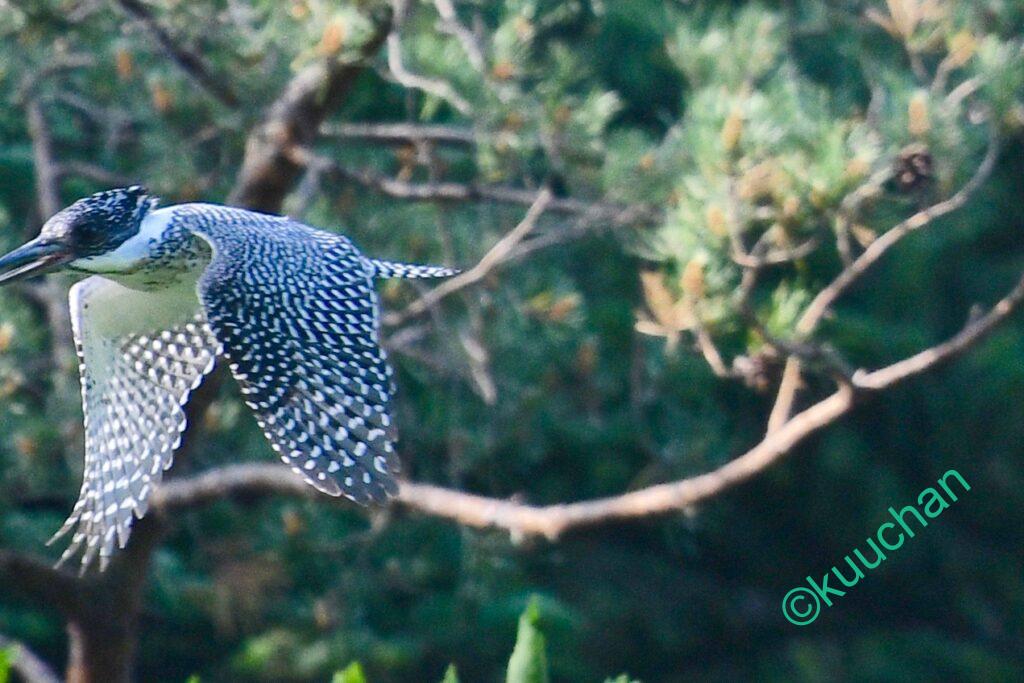 遠くからヤマセミの声が! 顔をあげると、下流から二羽のヤマセミが飛んできました!