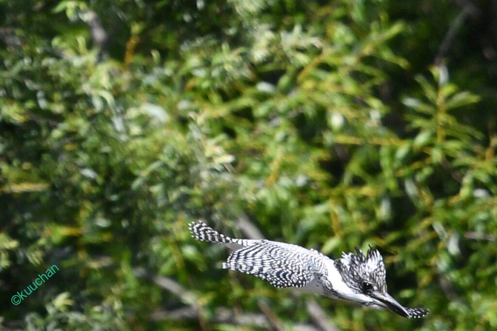 残念ながら、私の持っていたコンパクトカメラでは高速で飛ぶ姿は写せませんでしたが、大きな獲物を捕らえた時のうれしそうな顔や、食べる時にせっかくの魚を落としてしまって慌てる顔、食べ終わってから水浴びをしてさっぱりした顔など、様々な表情を見せてくれました。