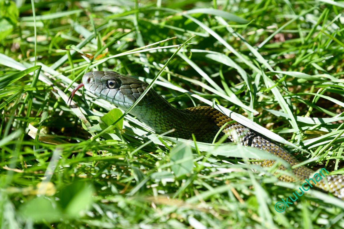 散歩道で出会ったアオダイショウ!!ゆっくりと目の前を横切って行きましたよ!!長い …