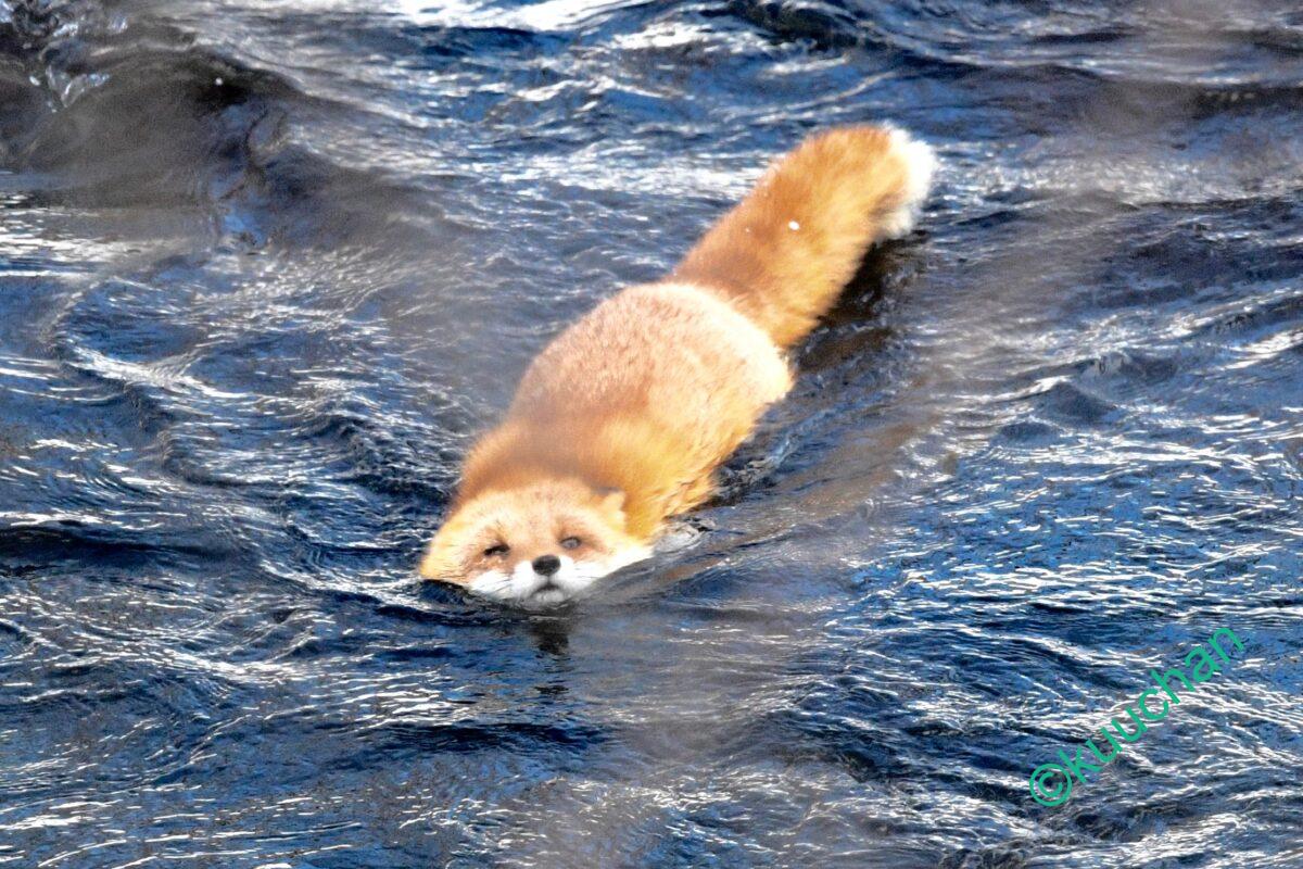 厳冬期の川を泳いで渡るキツネ。なんてたくましい命の輝き!! 1月最後のお散歩で、 …
