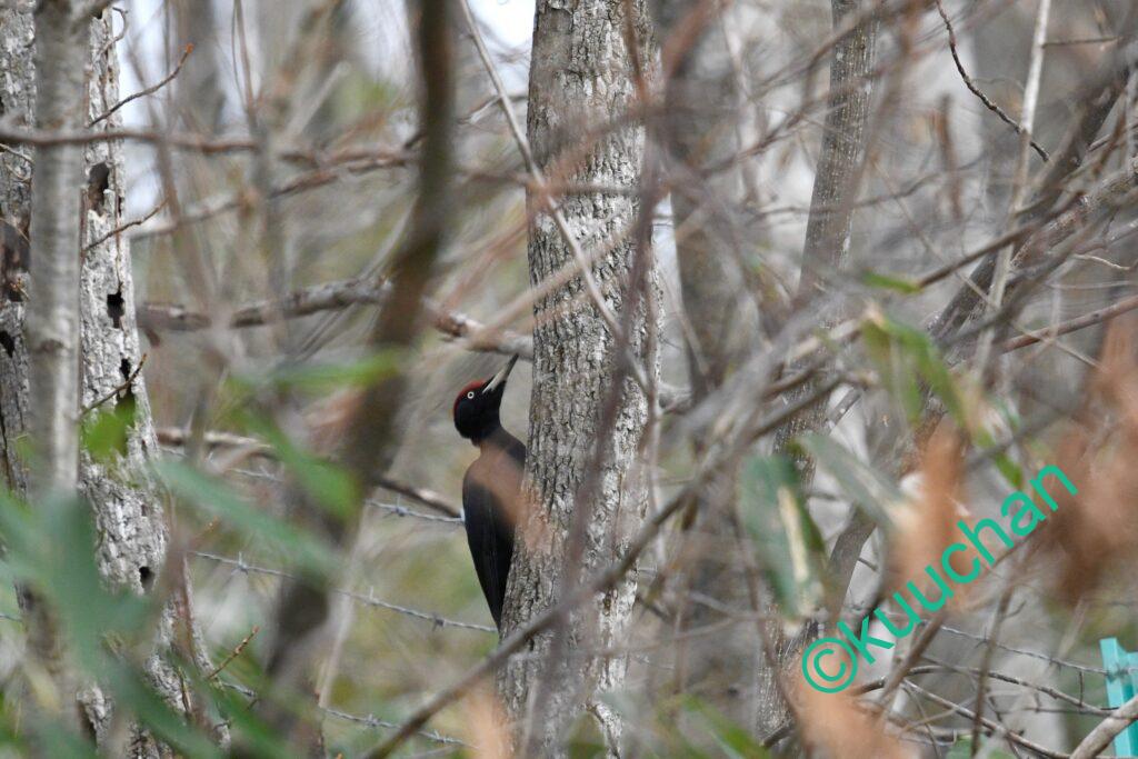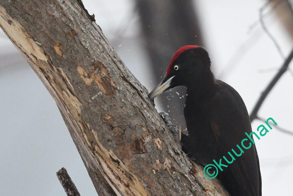 実は先月から職場でクマゲラの声が聞こえていて、外で冬支度をしている時に飛ぶ姿も見ていたのです。それで様子を伺っていたのですが、なかなかチャンスがなくて。