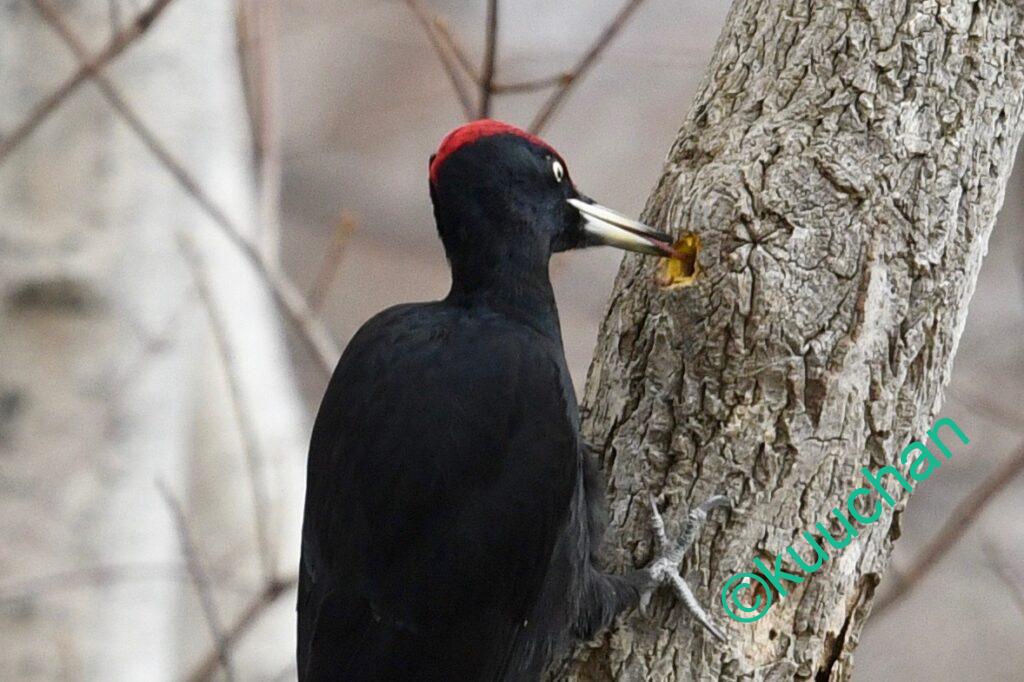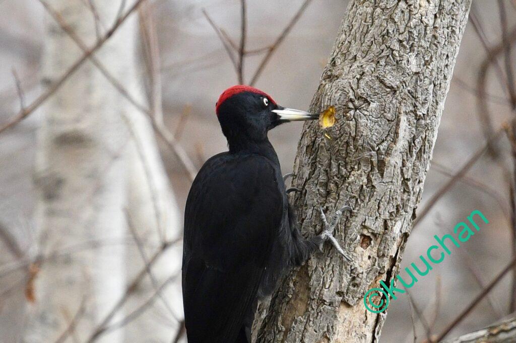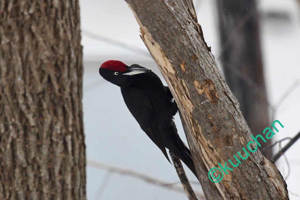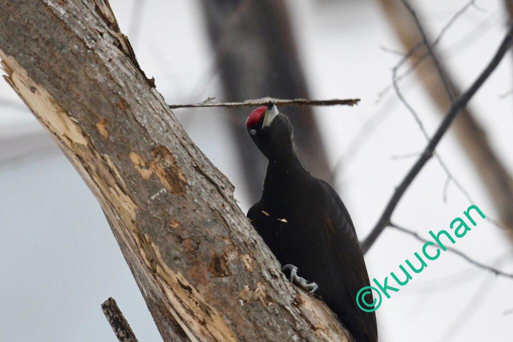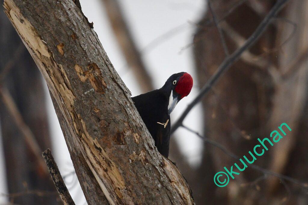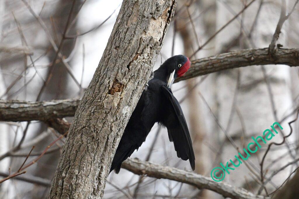 この後、木を登って行ったクマゲラ。飛ぶ? 飛んじゃう?