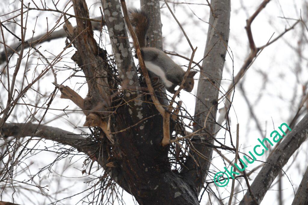 片方の子は耳の毛がちょっと貧相だけど、2匹そろってとても元気。樹上の巣らしきところに入ったけれど、冬の巣にしては簡素すぎるので、使用済みのものかもしれませんね。ちなみに片方は女の子のようでした。