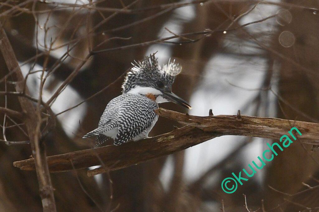 近くにとまったヤマセミ、とてもきれいなオスです。