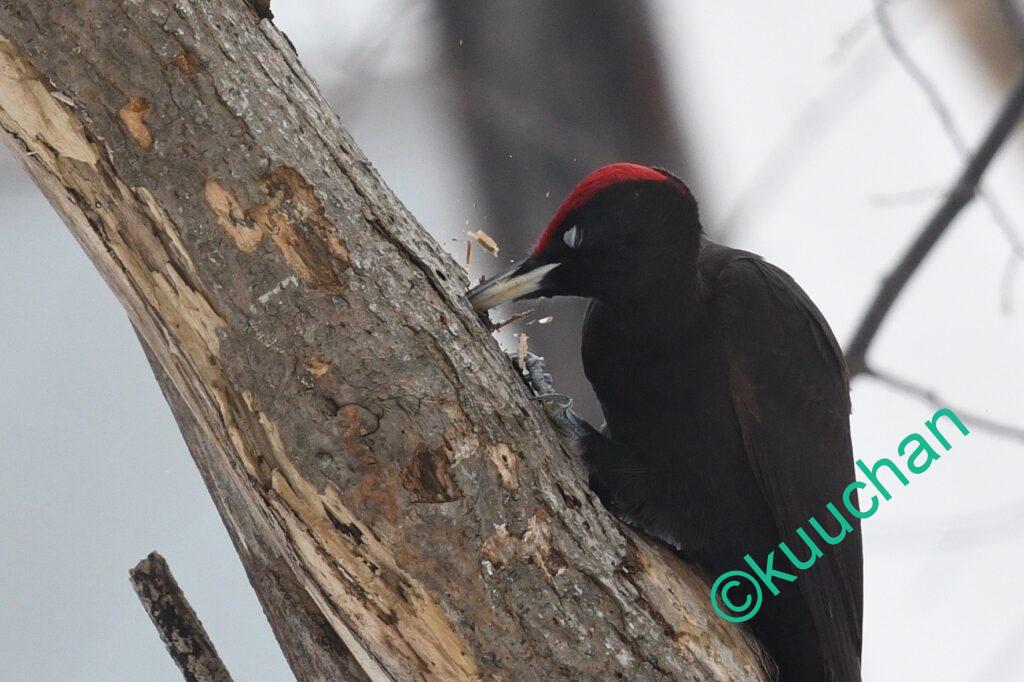 なにか大物がでて真剣に見ていると、必ずといっていいほどクマゲラがやってくるのです。