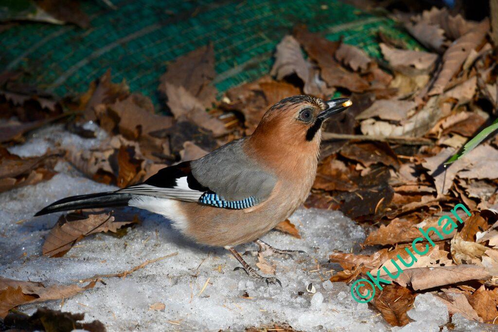 カケスは、実は二羽いました。観察している時に目の前から飛び立ったカケスにバイバーイと言ったら、別方向から現れたカケスが目の前に。