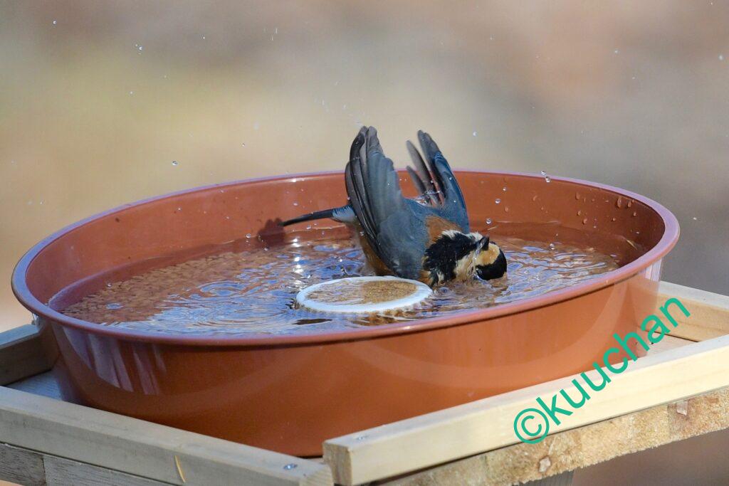 それでも鳥たちが来ていたので、最初はお湯で氷を融かしていたのですが、ものの数分で凍ってしまうため、あえなく撤去。また春に設置しようと思います。