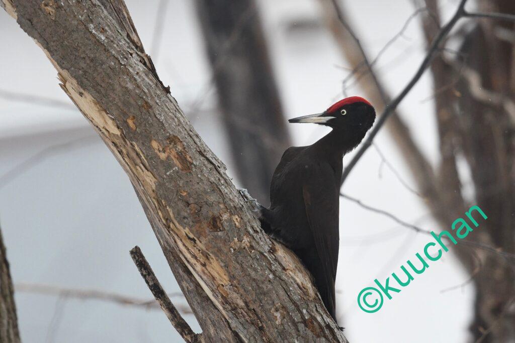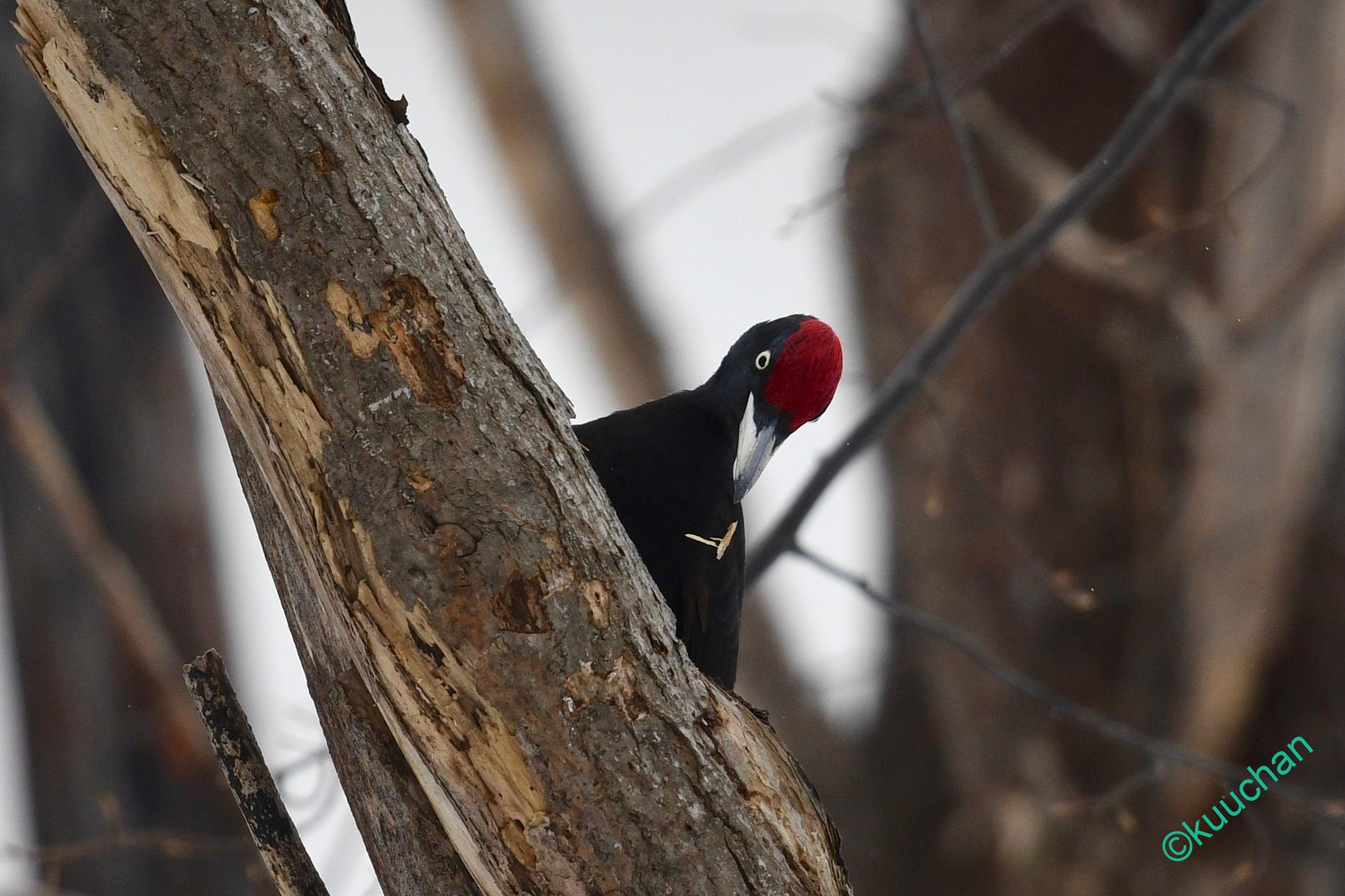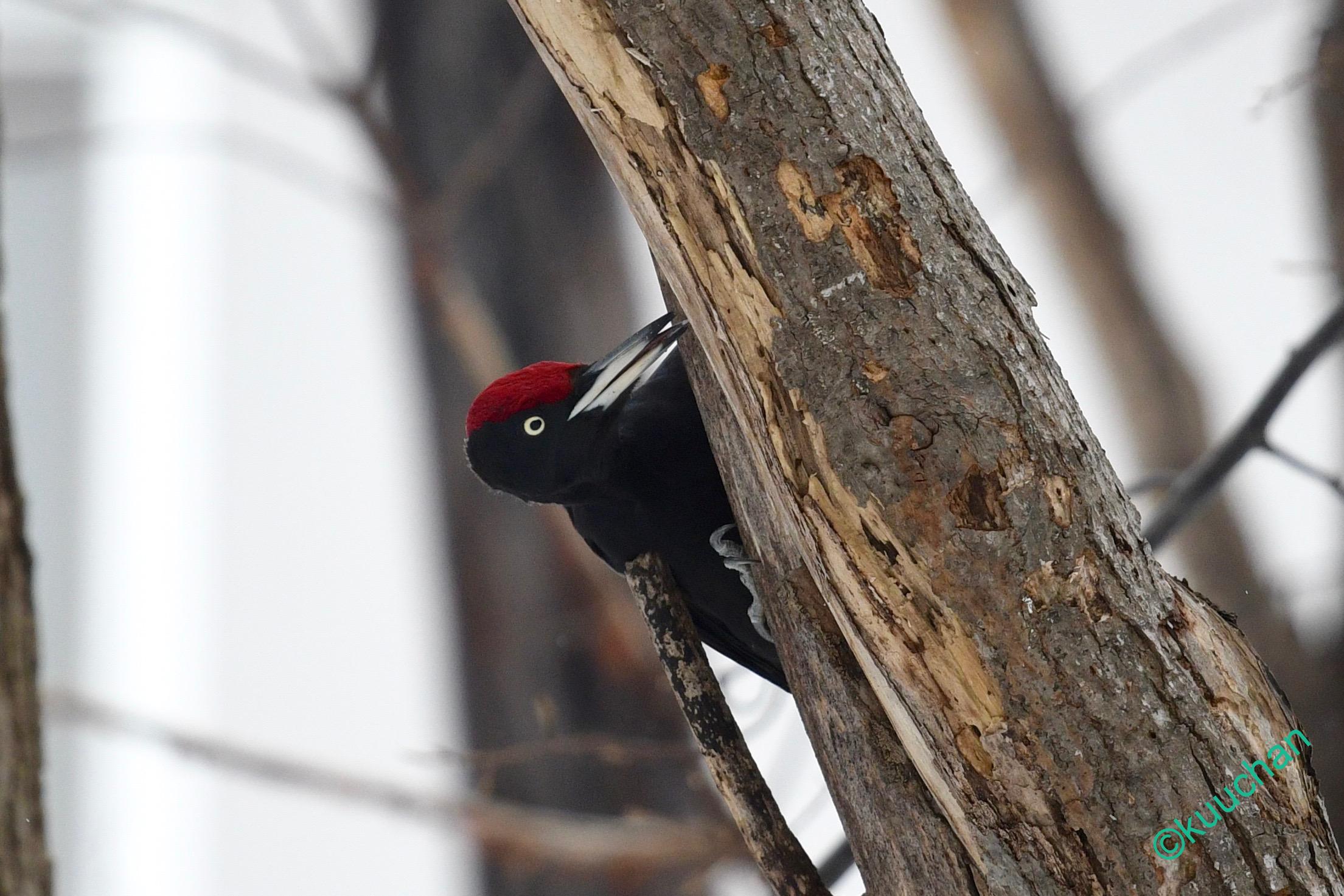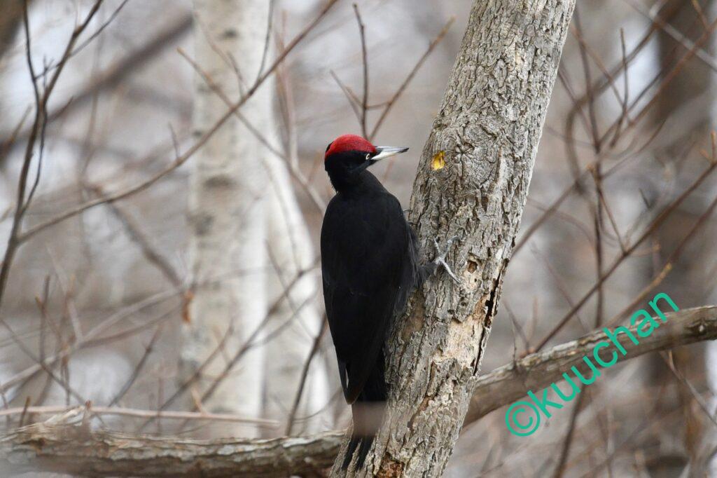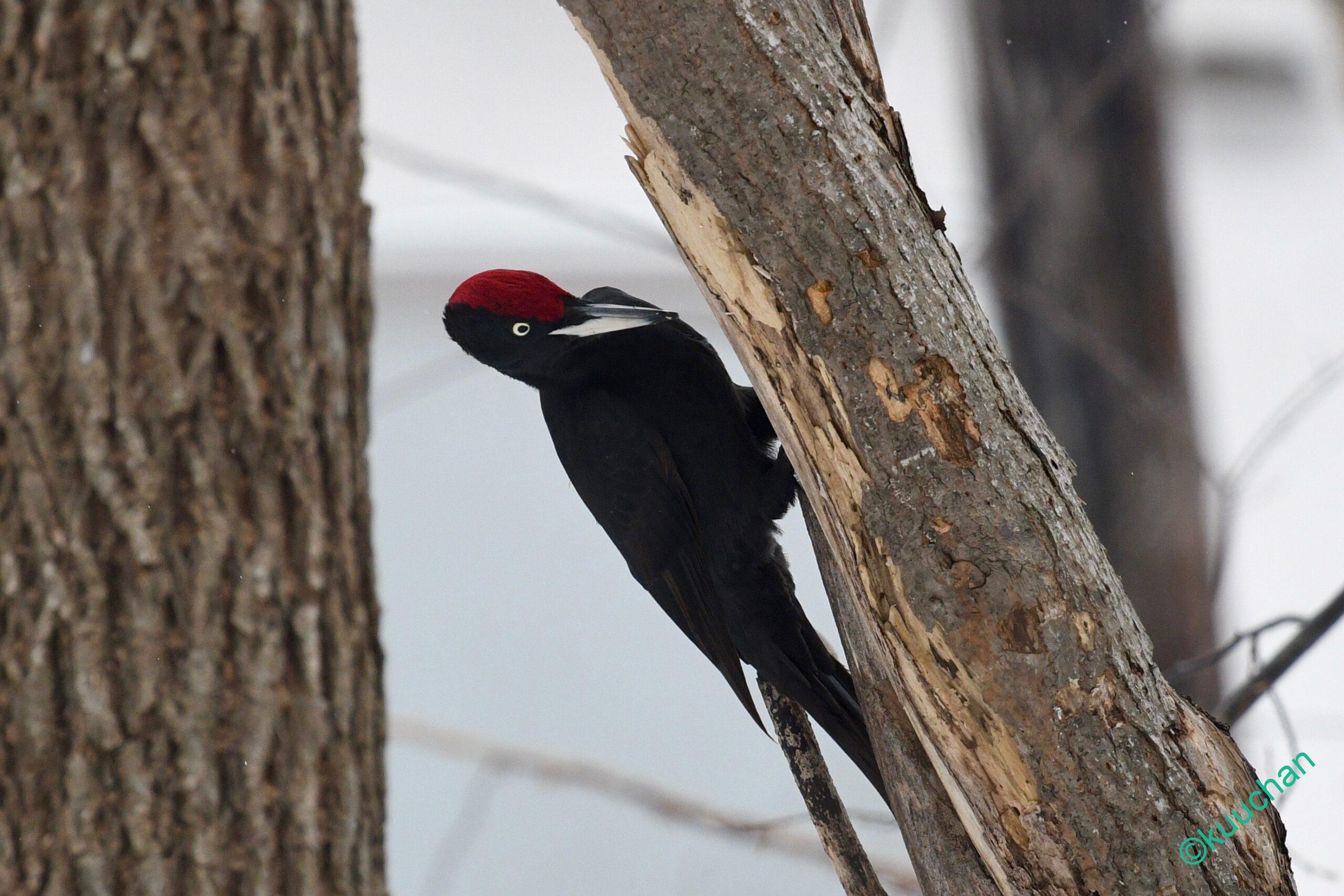 この後、木を登って行ったクマゲラ。飛ぶ? 飛んじゃう?