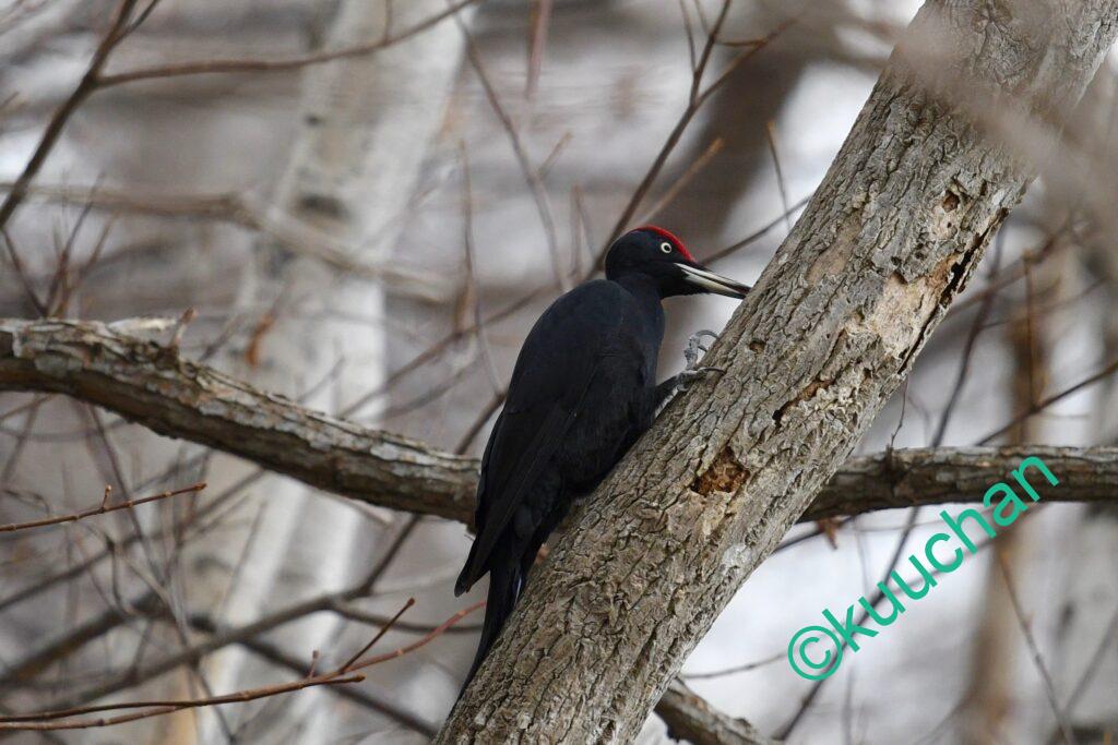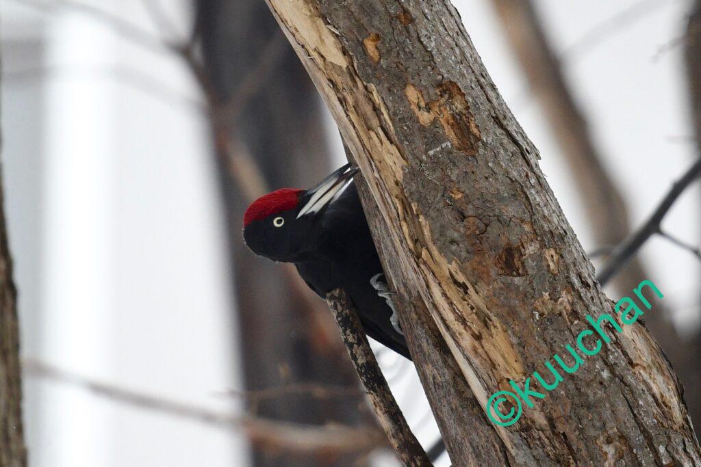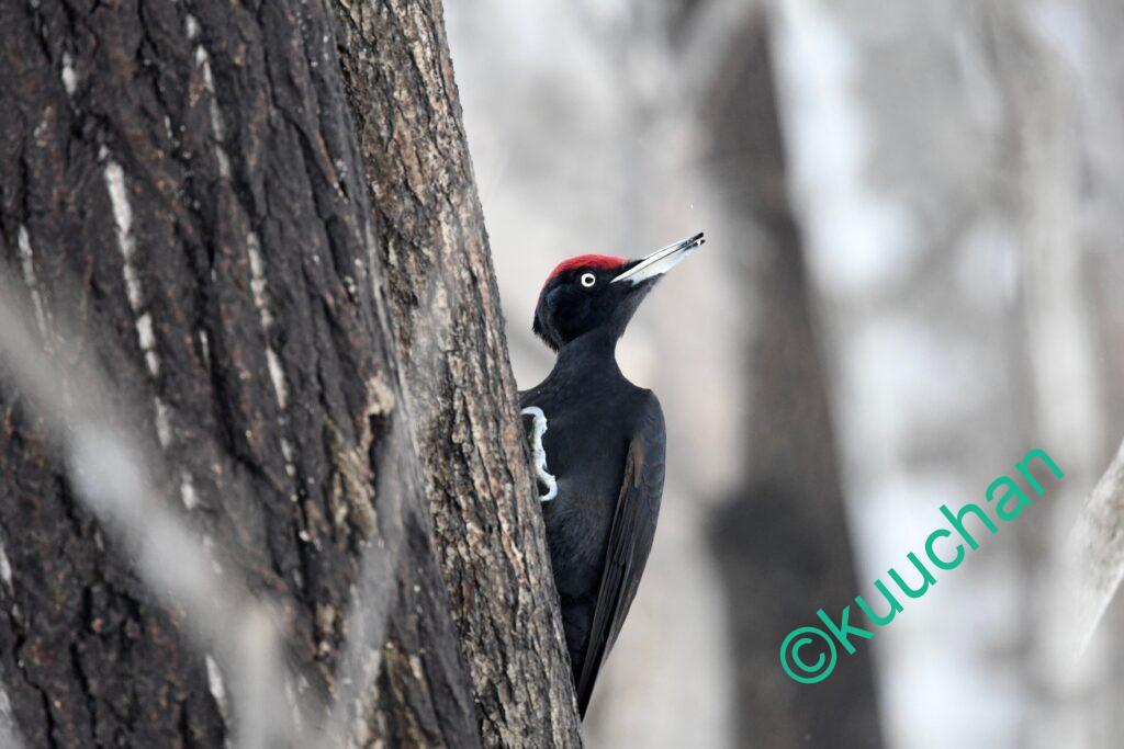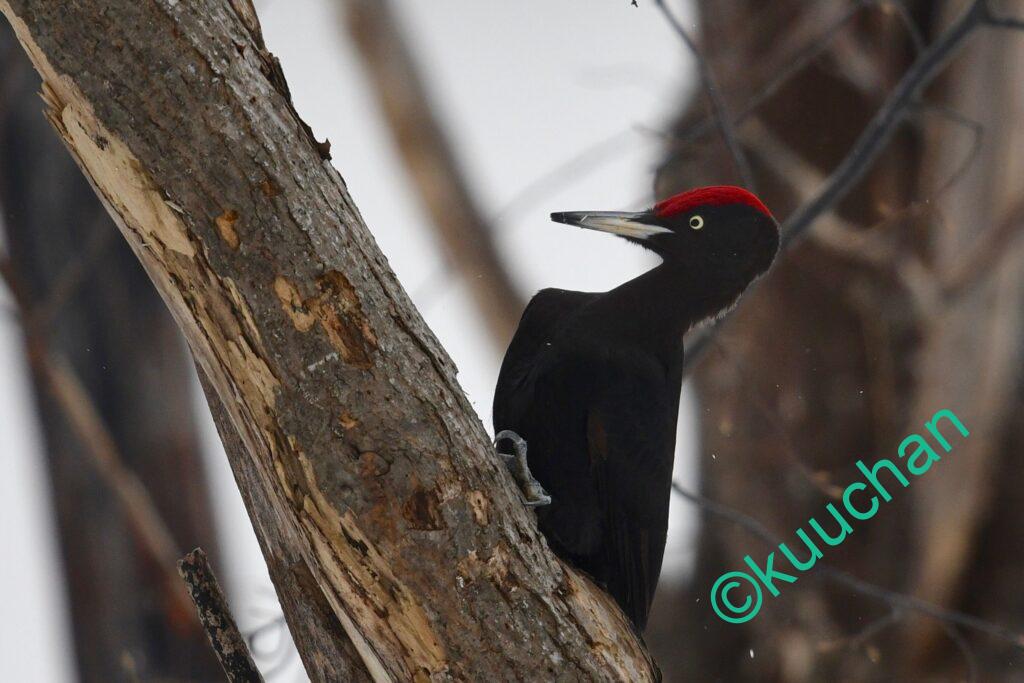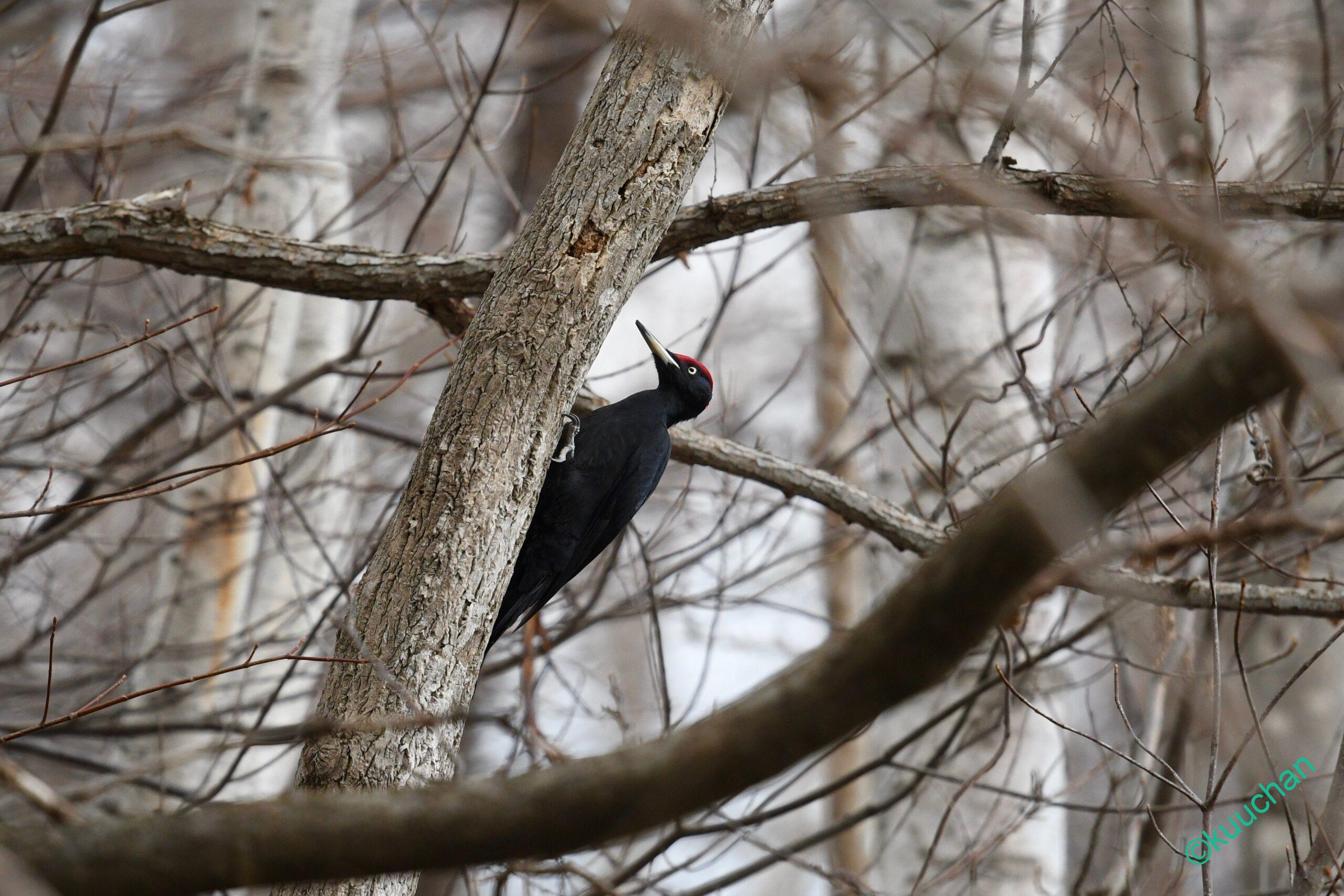 この後、木を登って行ったクマゲラ。飛ぶ? 飛んじゃう?