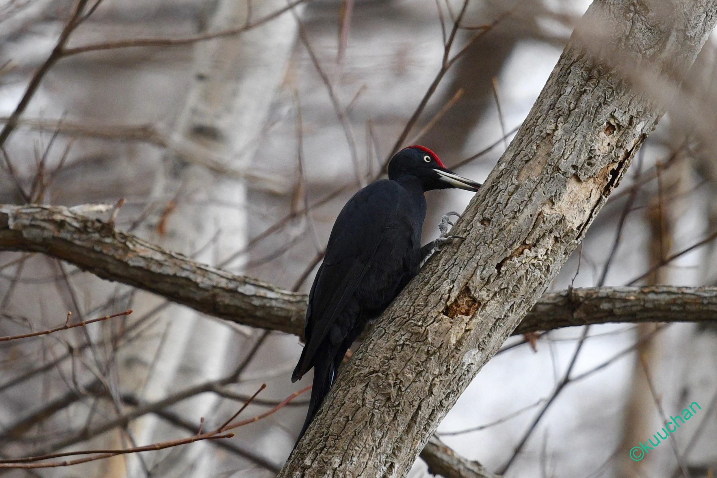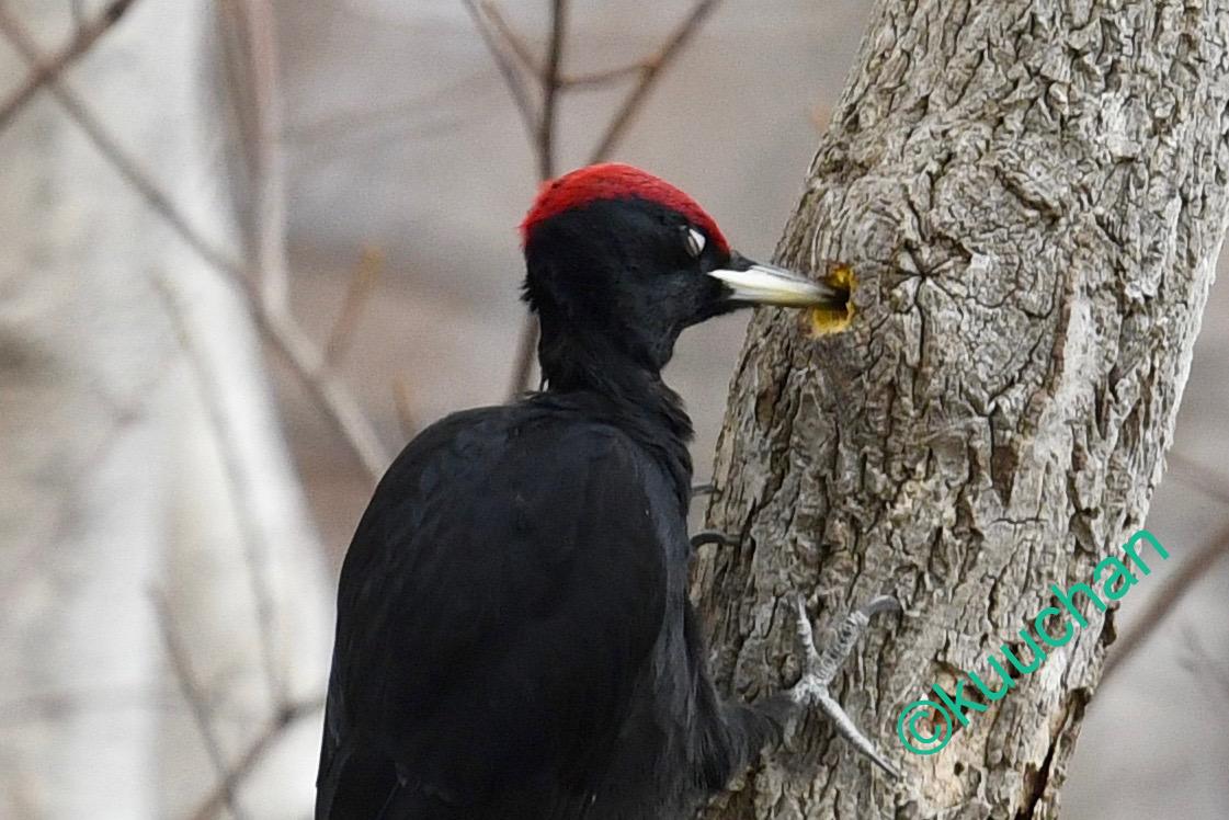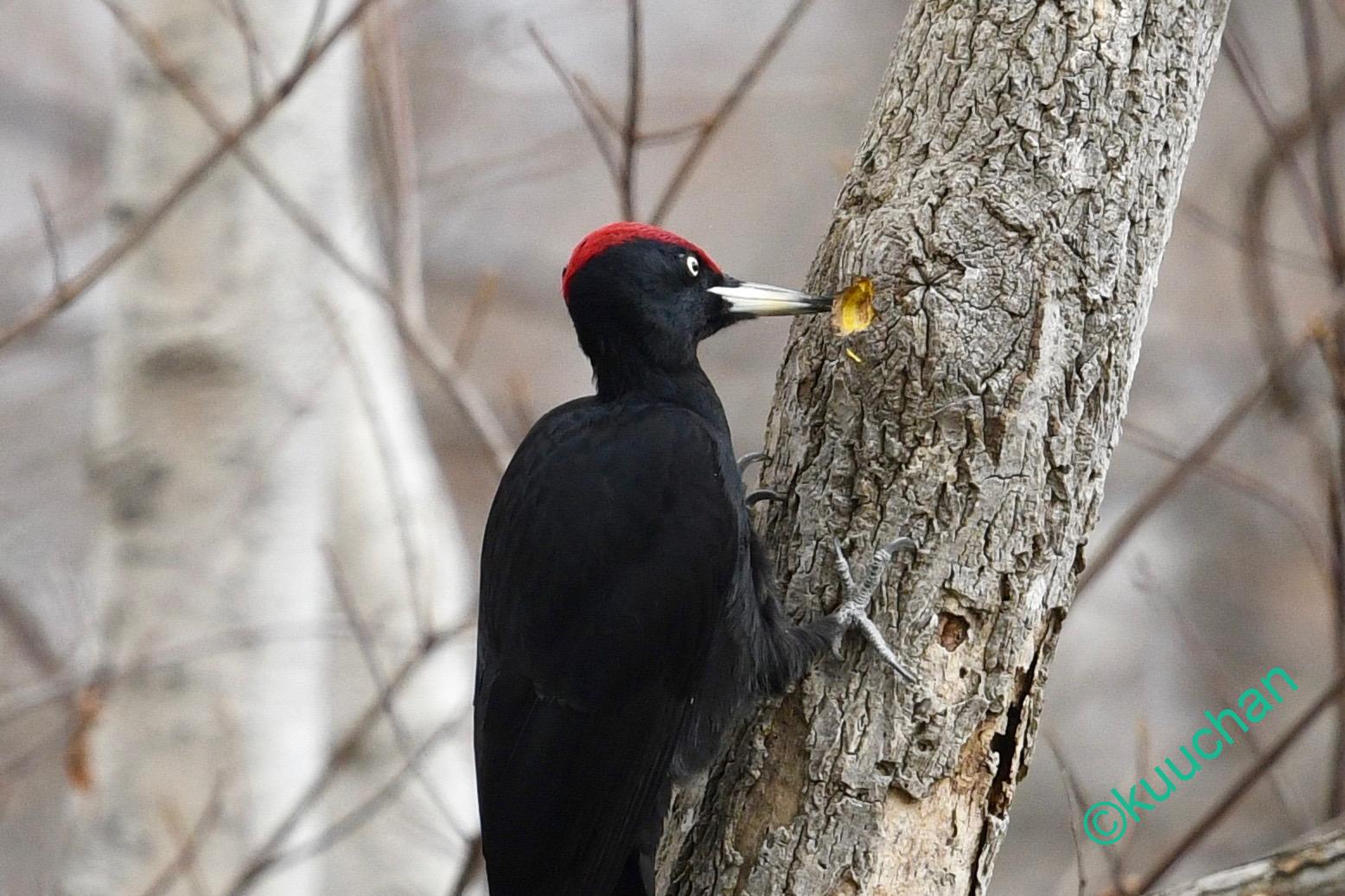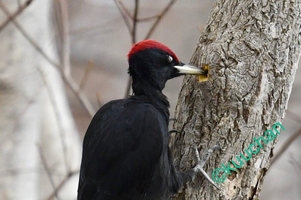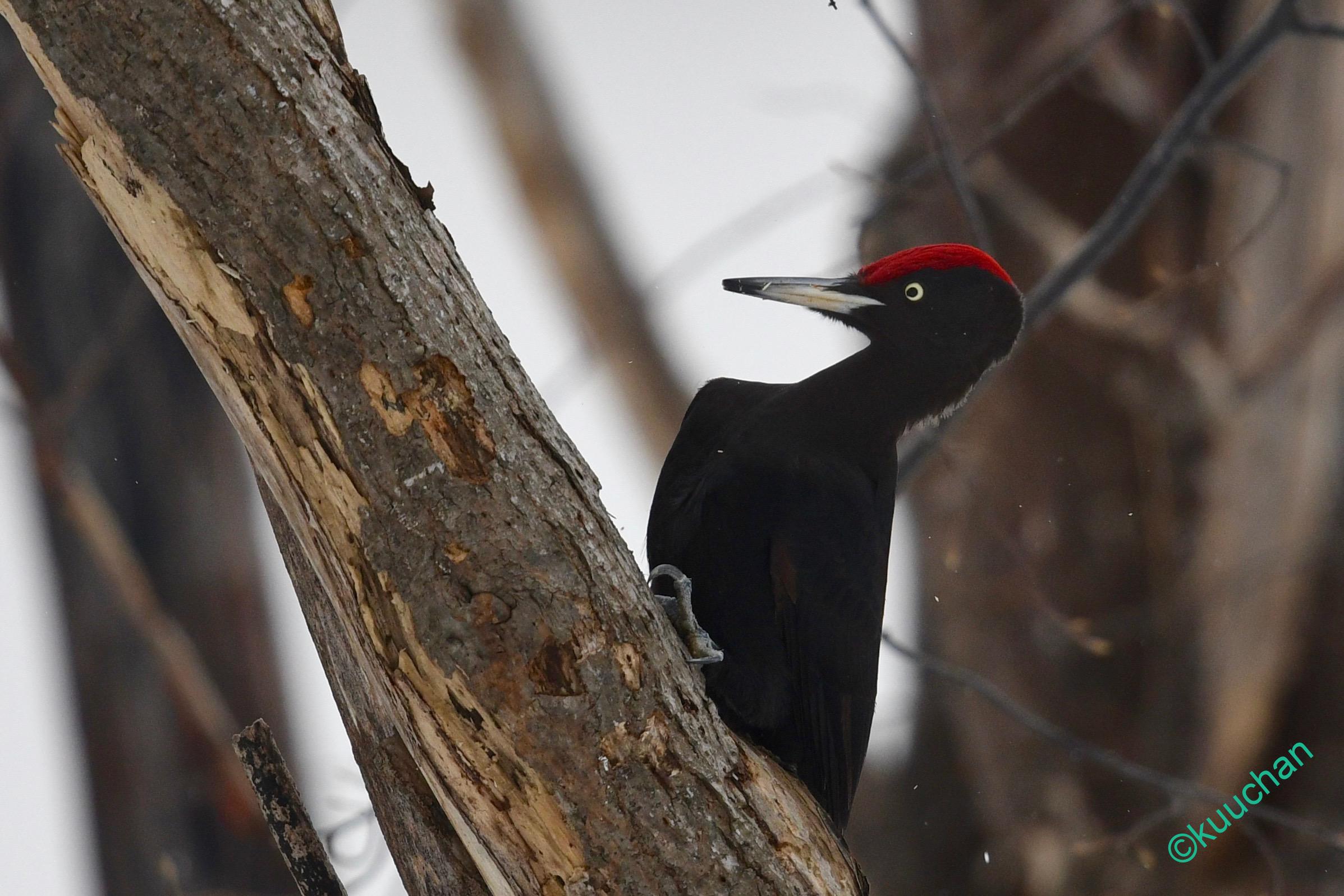 この後、木を登って行ったクマゲラ。飛ぶ? 飛んじゃう?