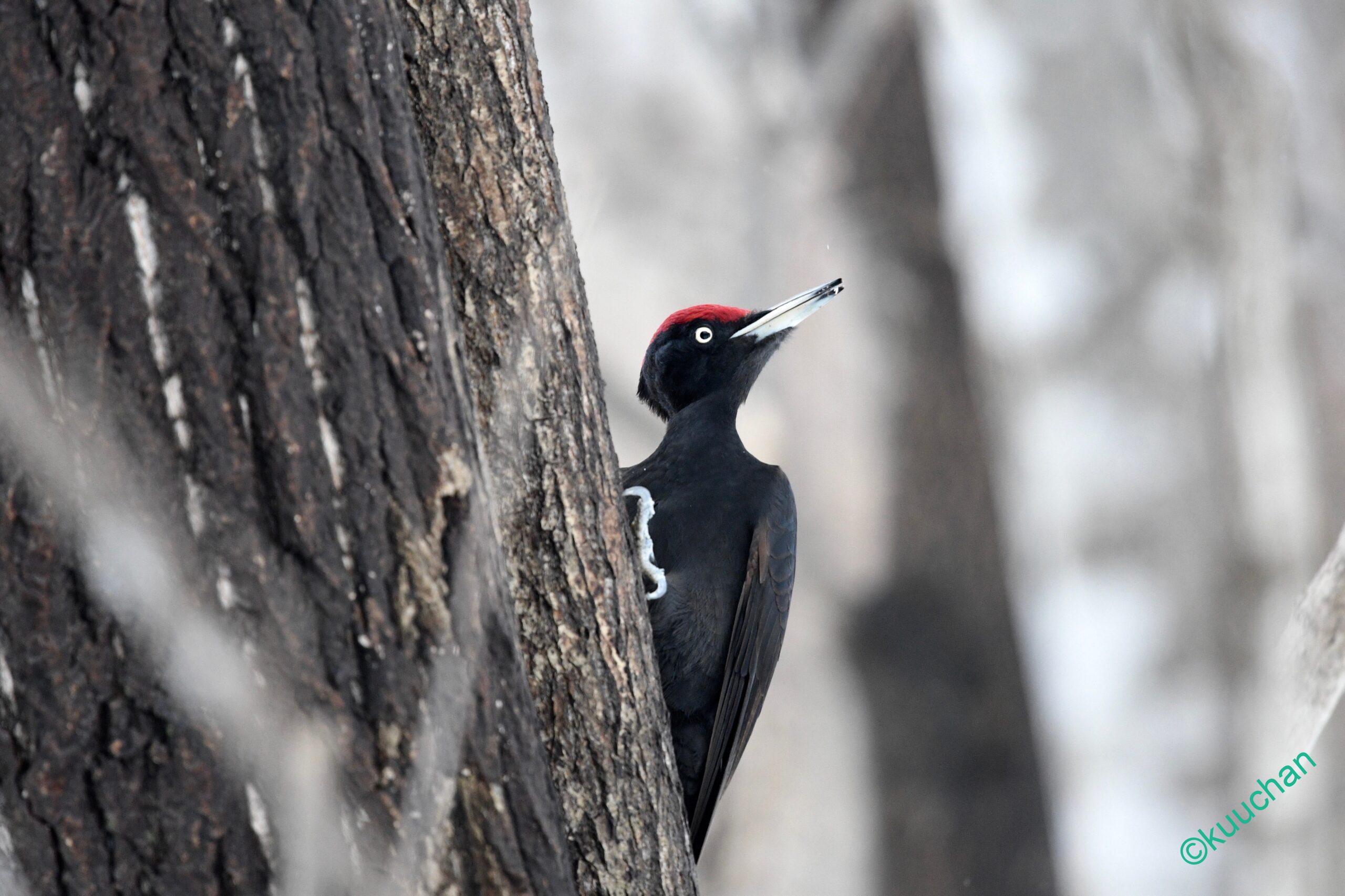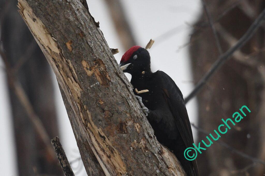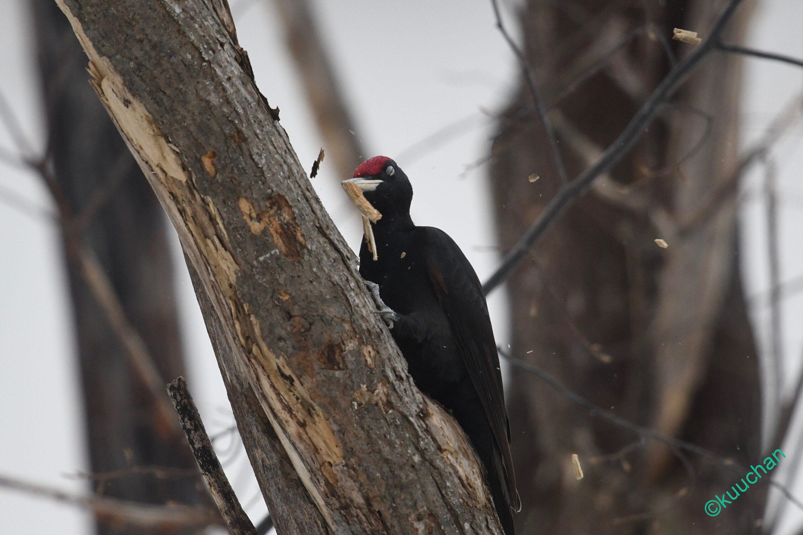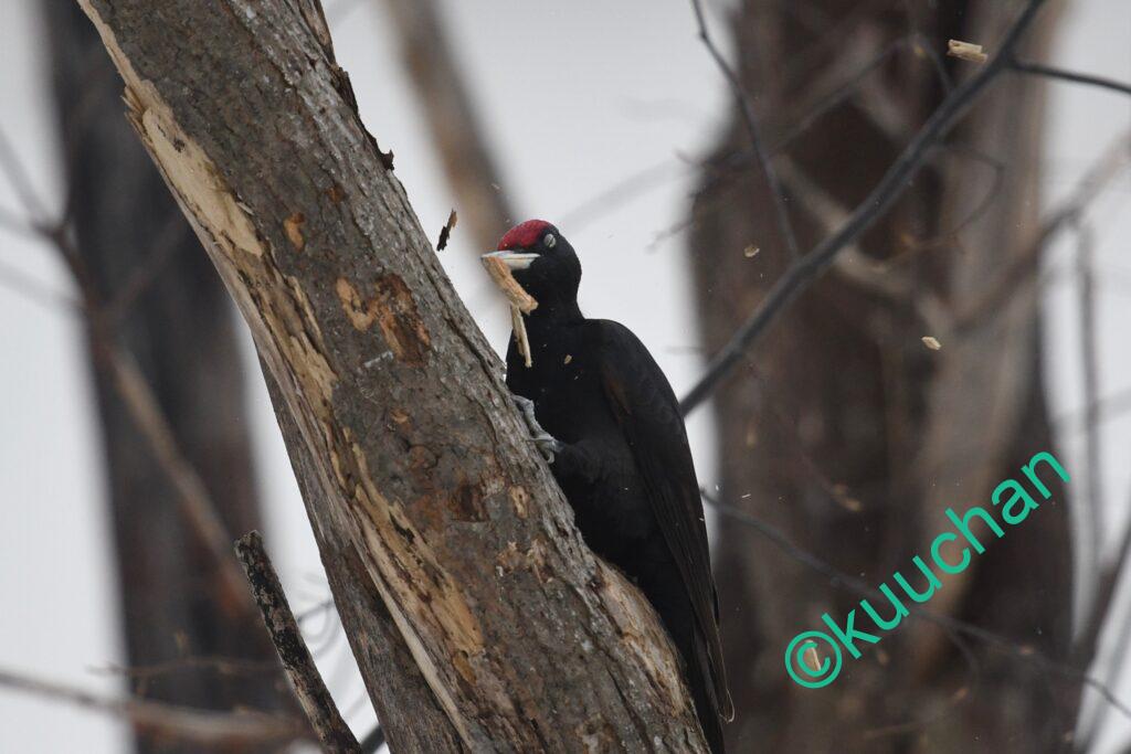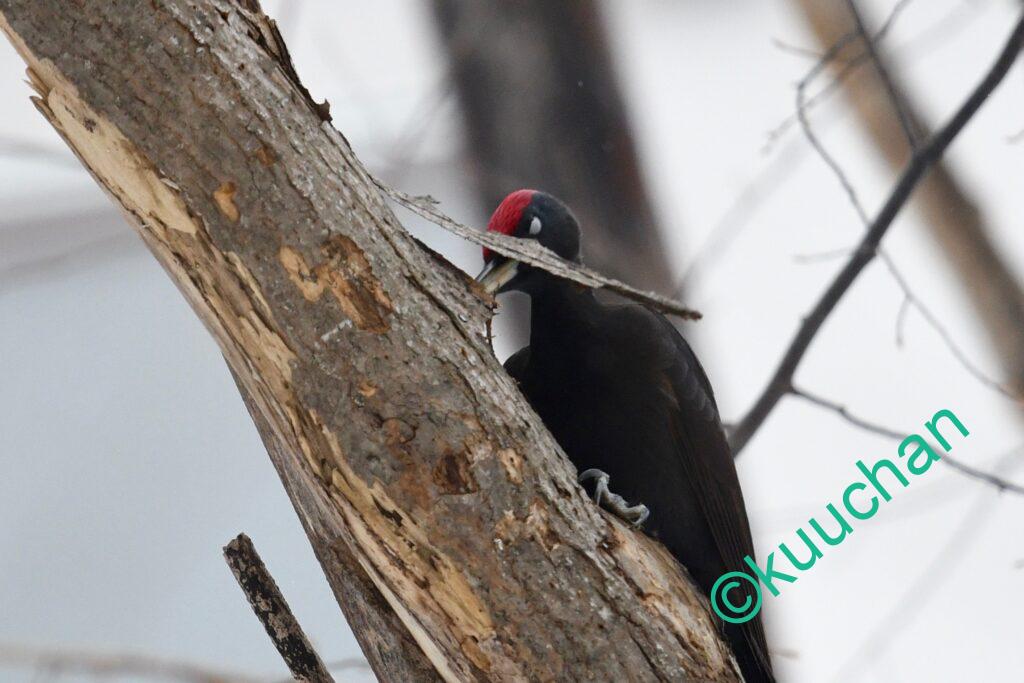 実は先月から職場でクマゲラの声が聞こえていて、外で冬支度をしている時に飛ぶ姿も見ていたのです。それで様子を伺っていたのですが、なかなかチャンスがなくて。