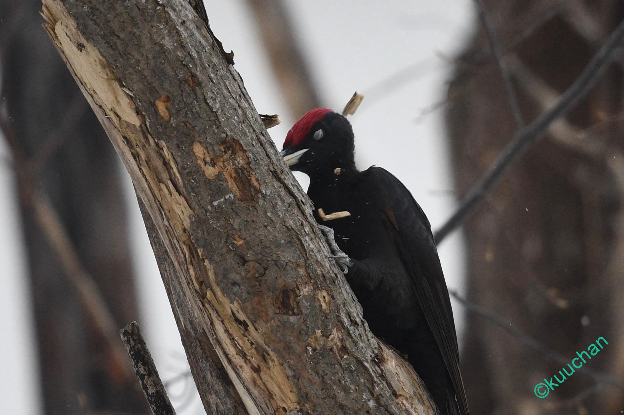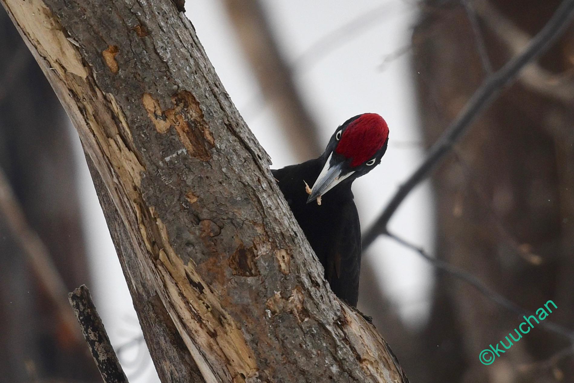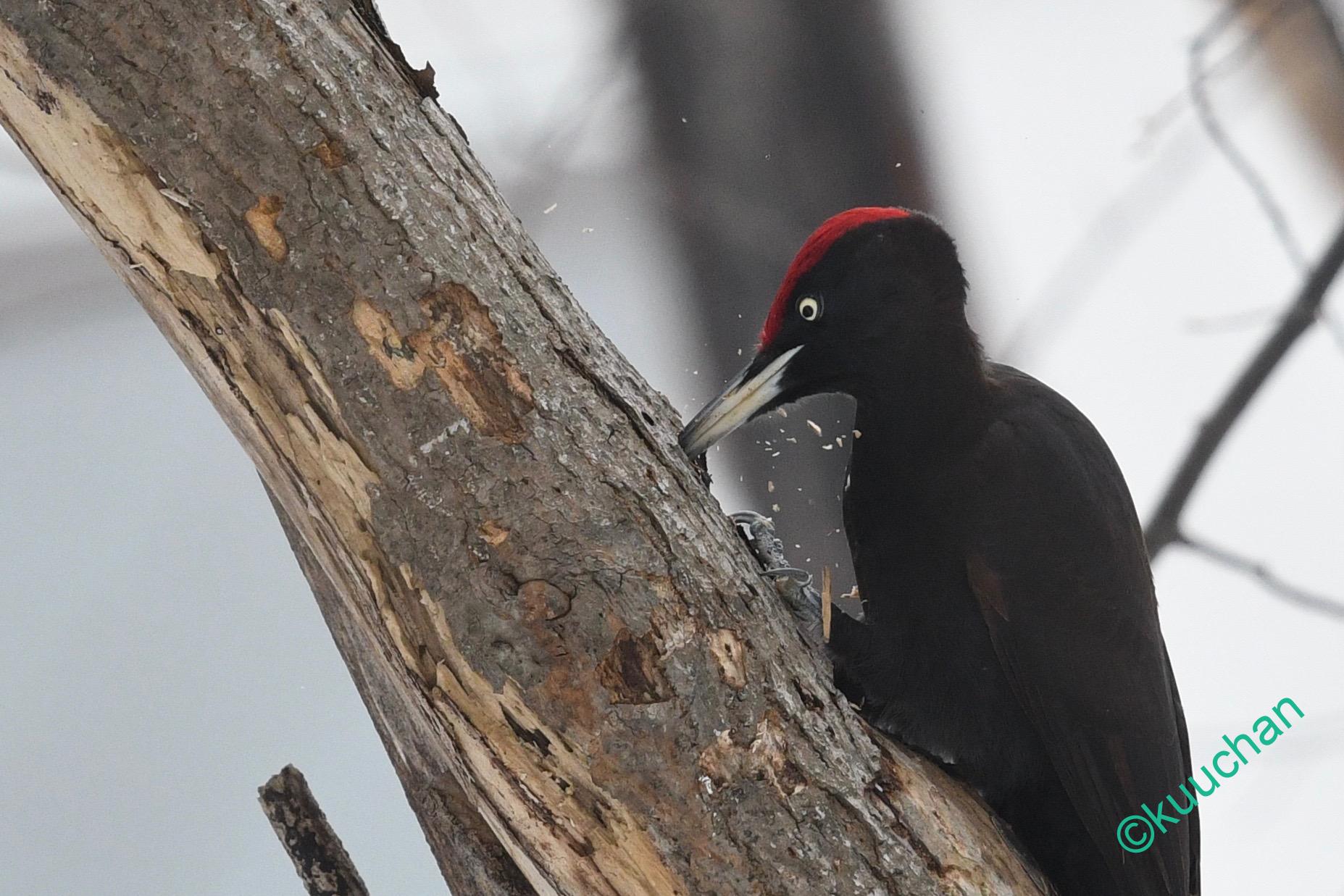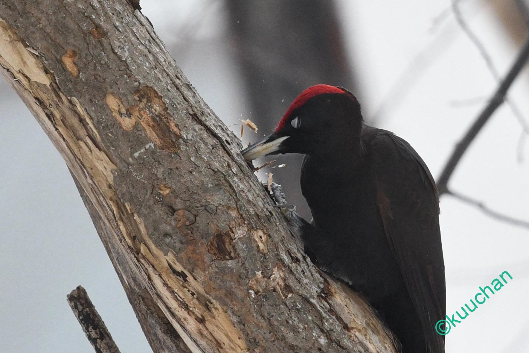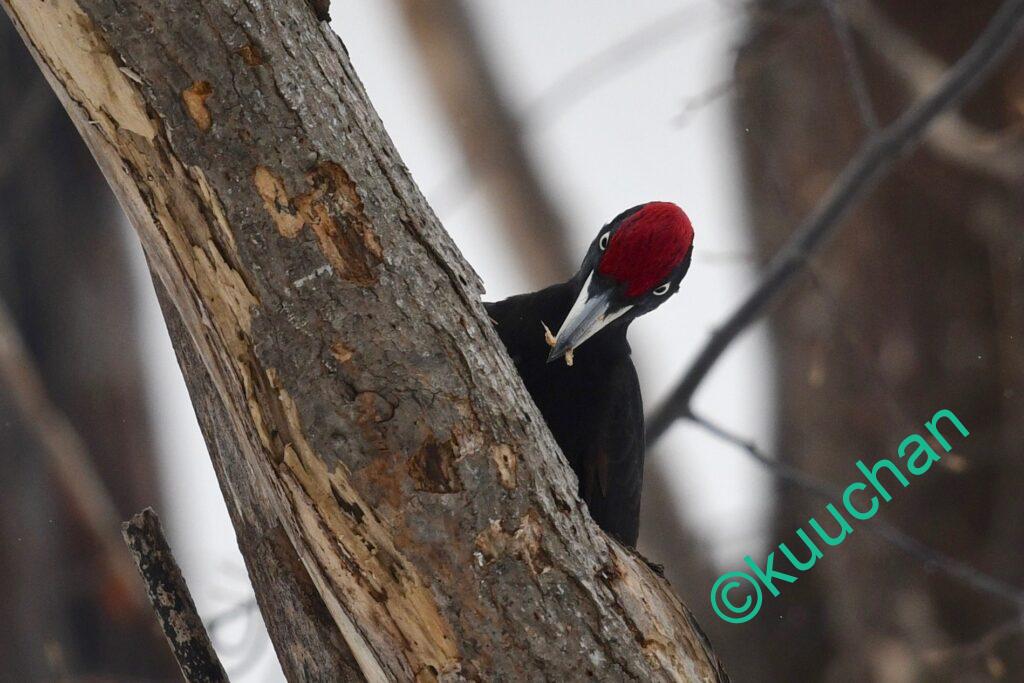 なにか大物がでて真剣に見ていると、必ずといっていいほどクマゲラがやってくるのです。