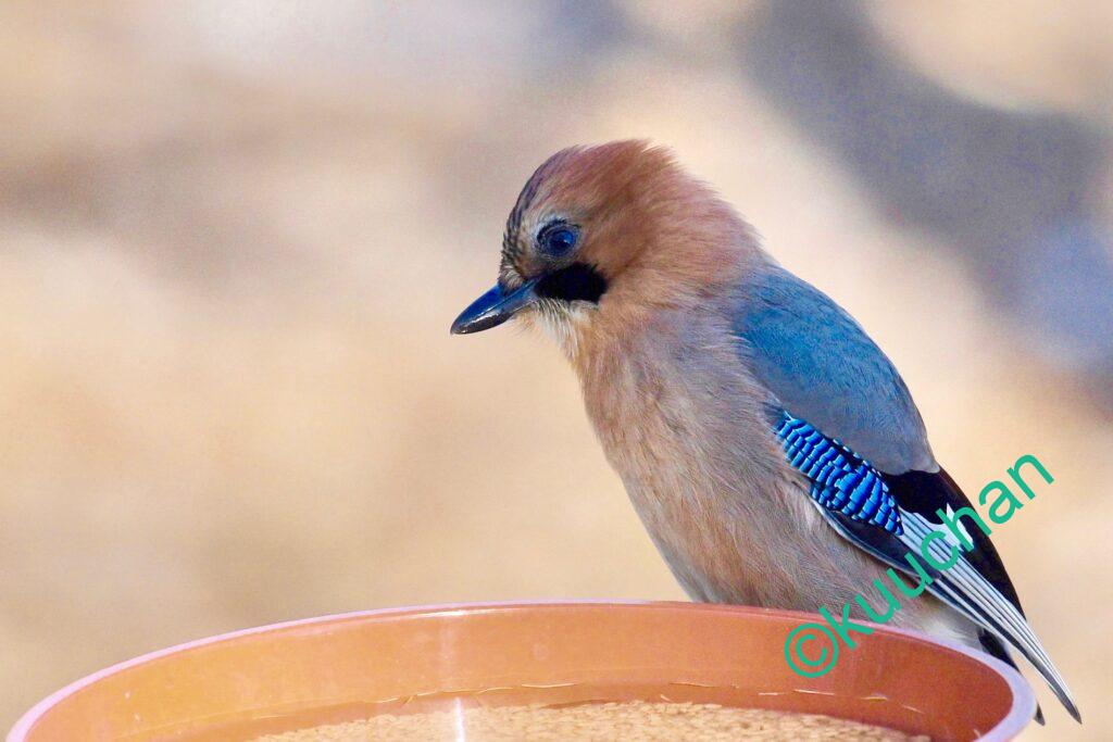カケスは、実は二羽いました。観察している時に目の前から飛び立ったカケスにバイバーイと言ったら、別方向から現れたカケスが目の前に。
