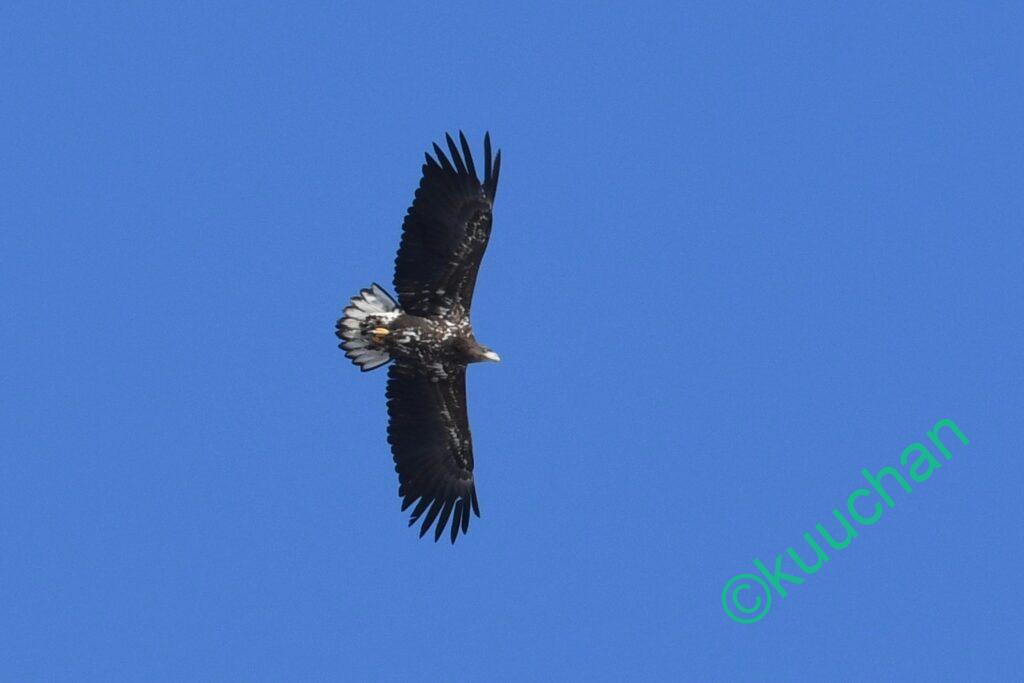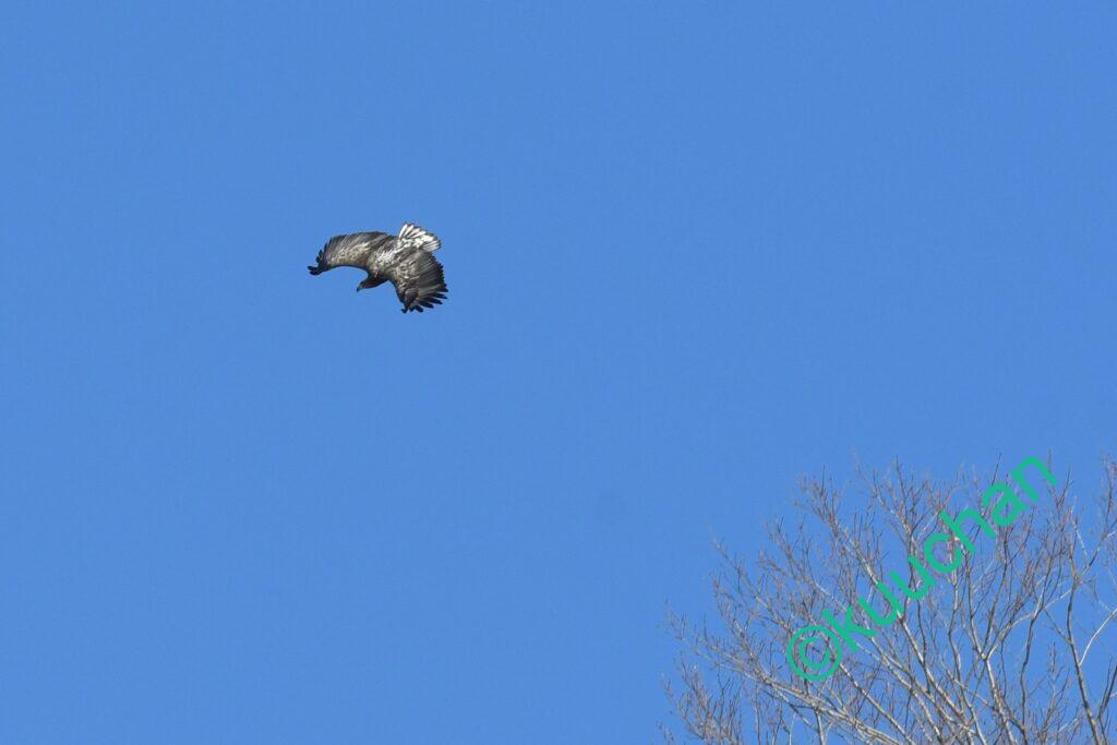 この強風の中を幼いオジロワシが飛んできました。大丈夫かい??