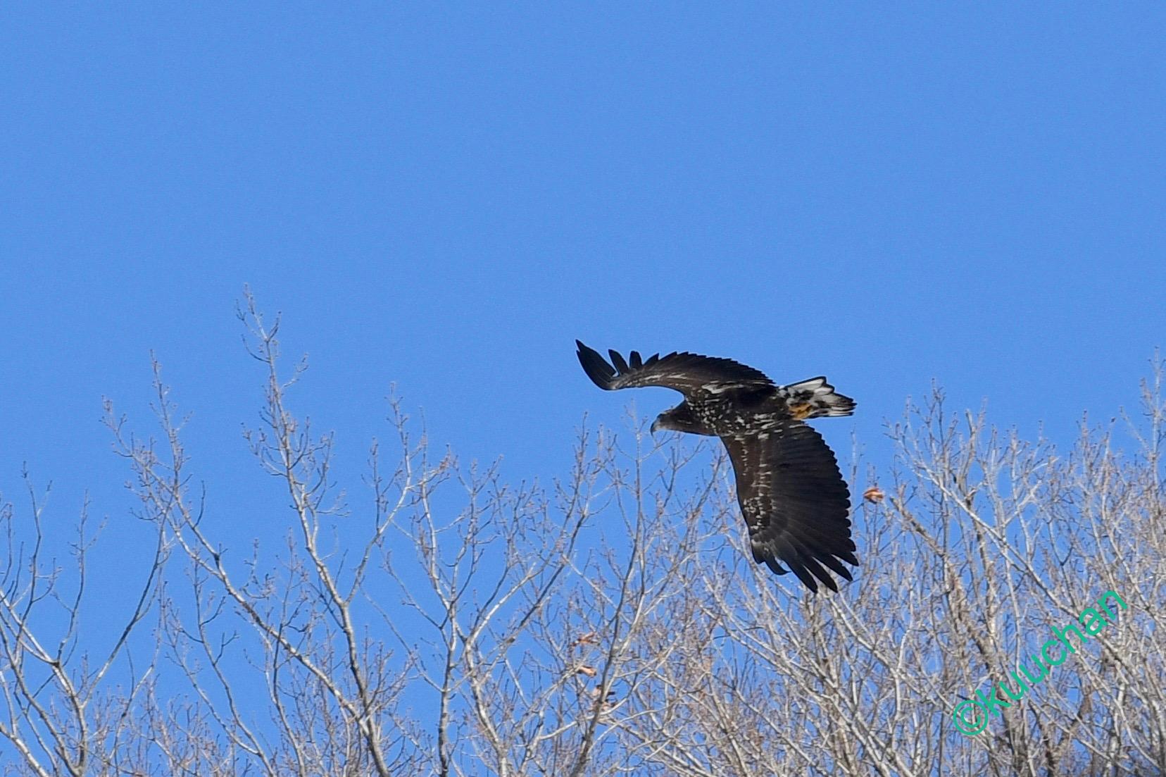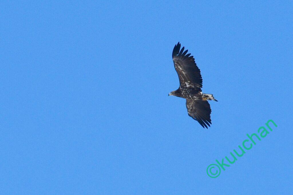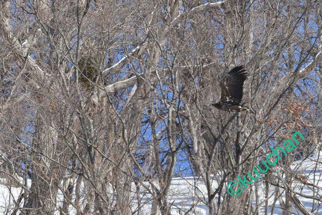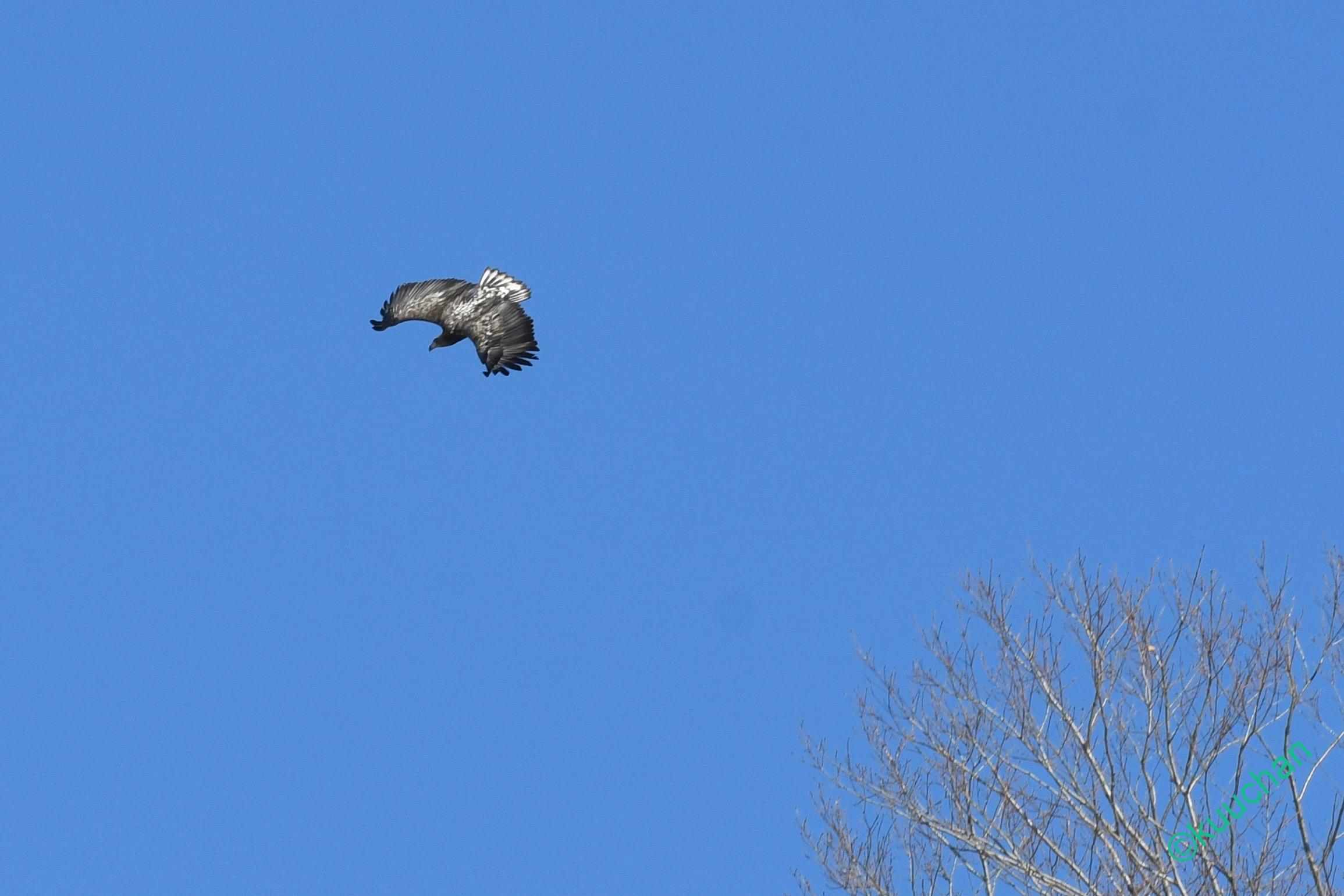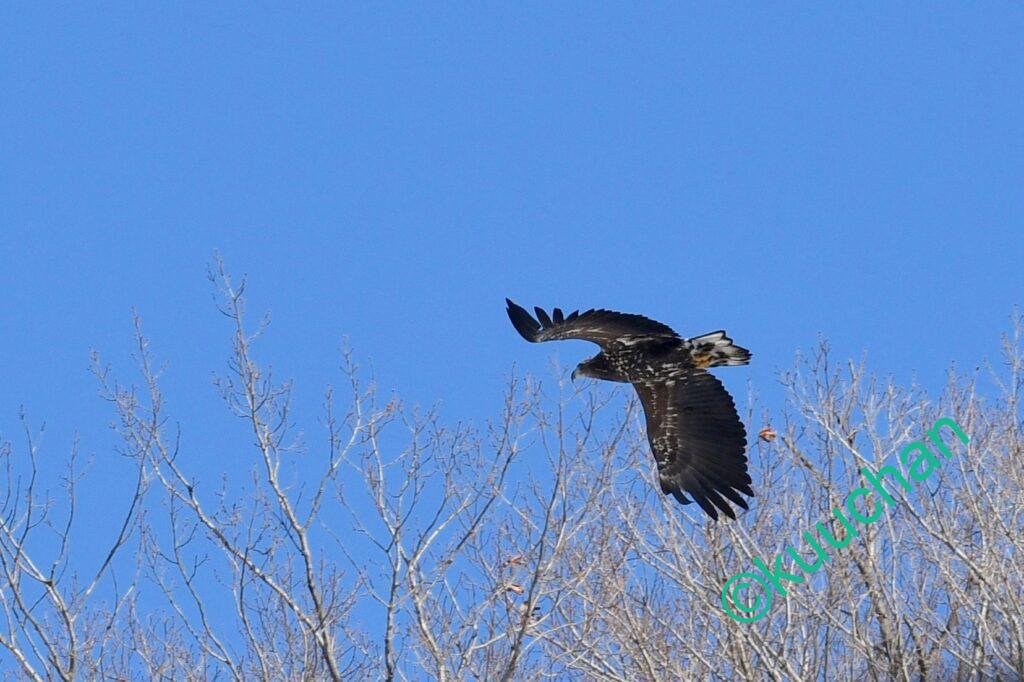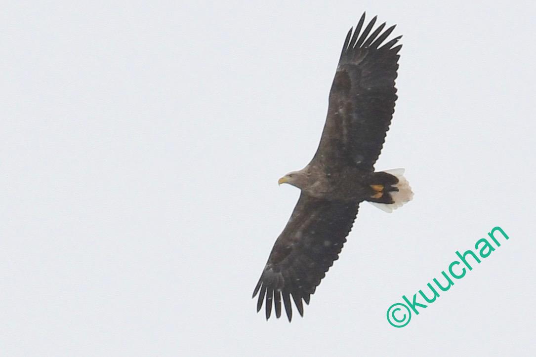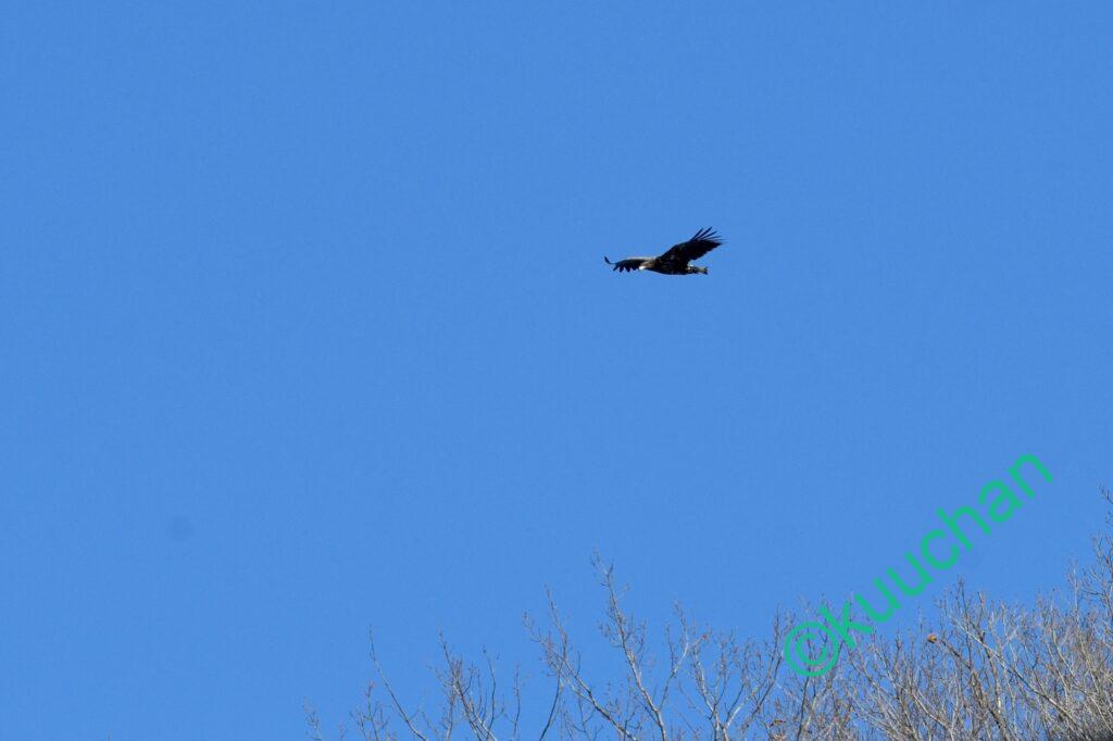この強風の中を幼いオジロワシが飛んできました。大丈夫かい??