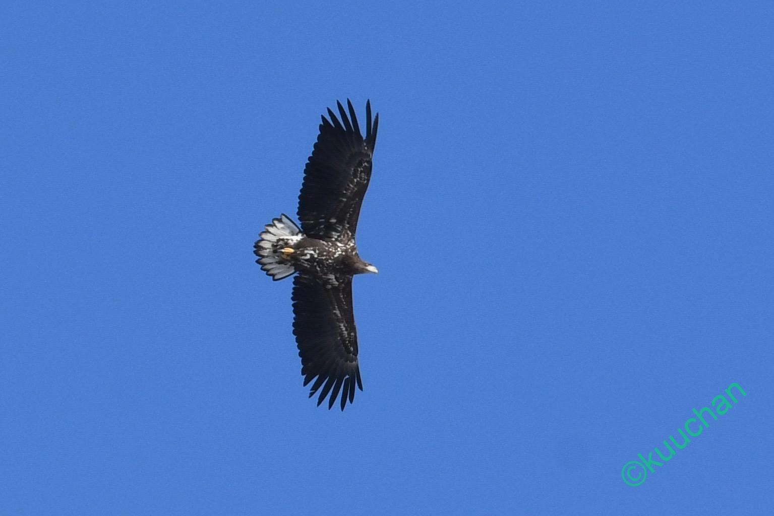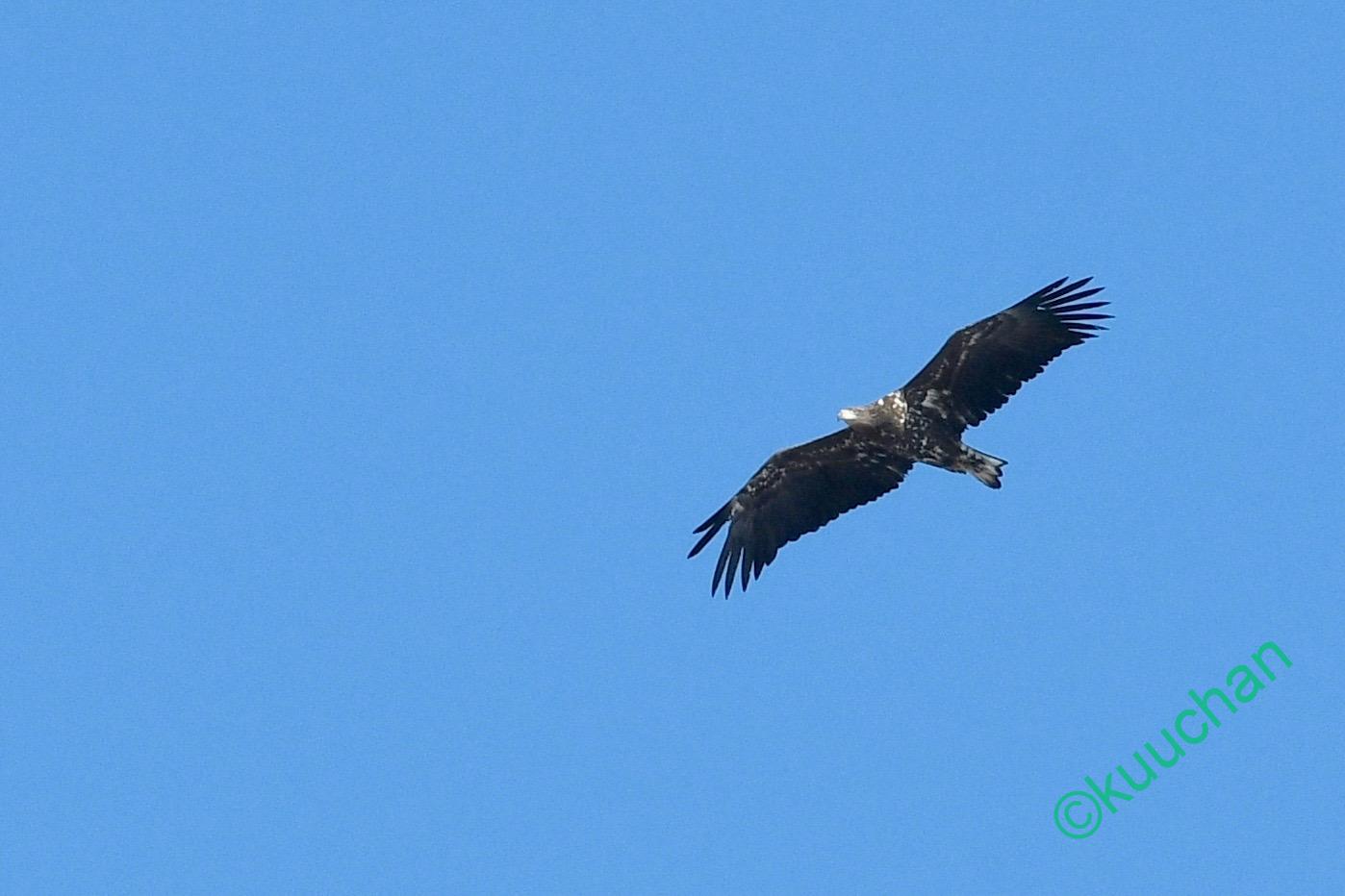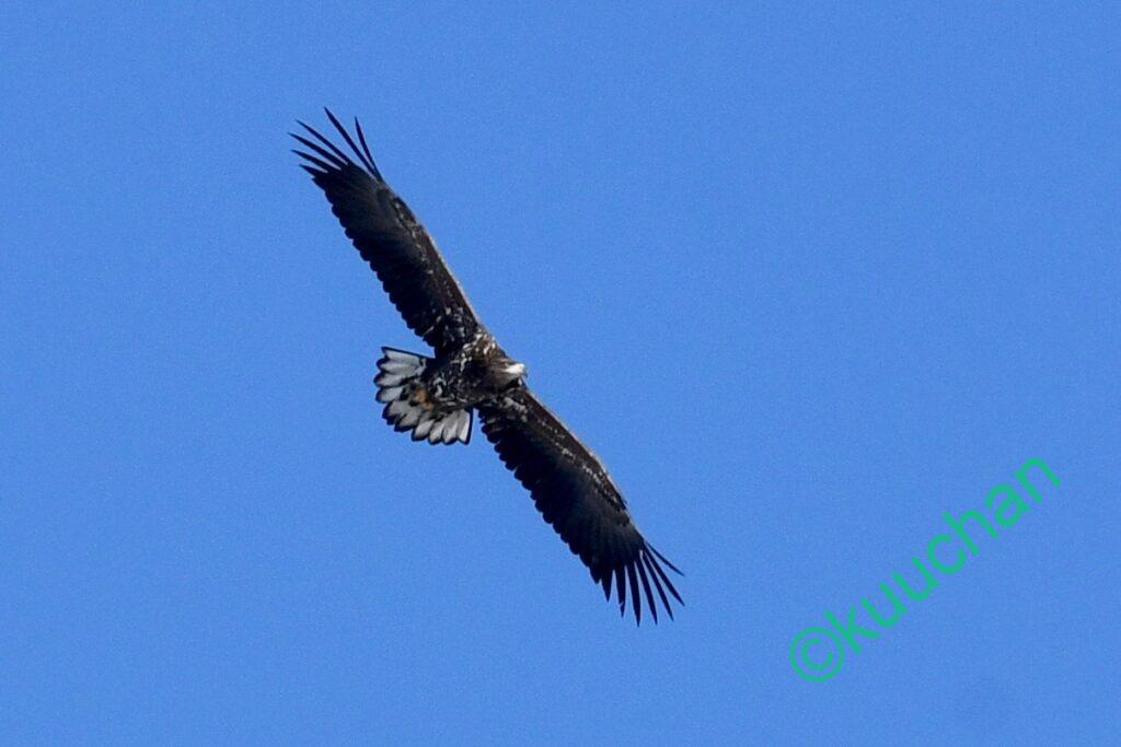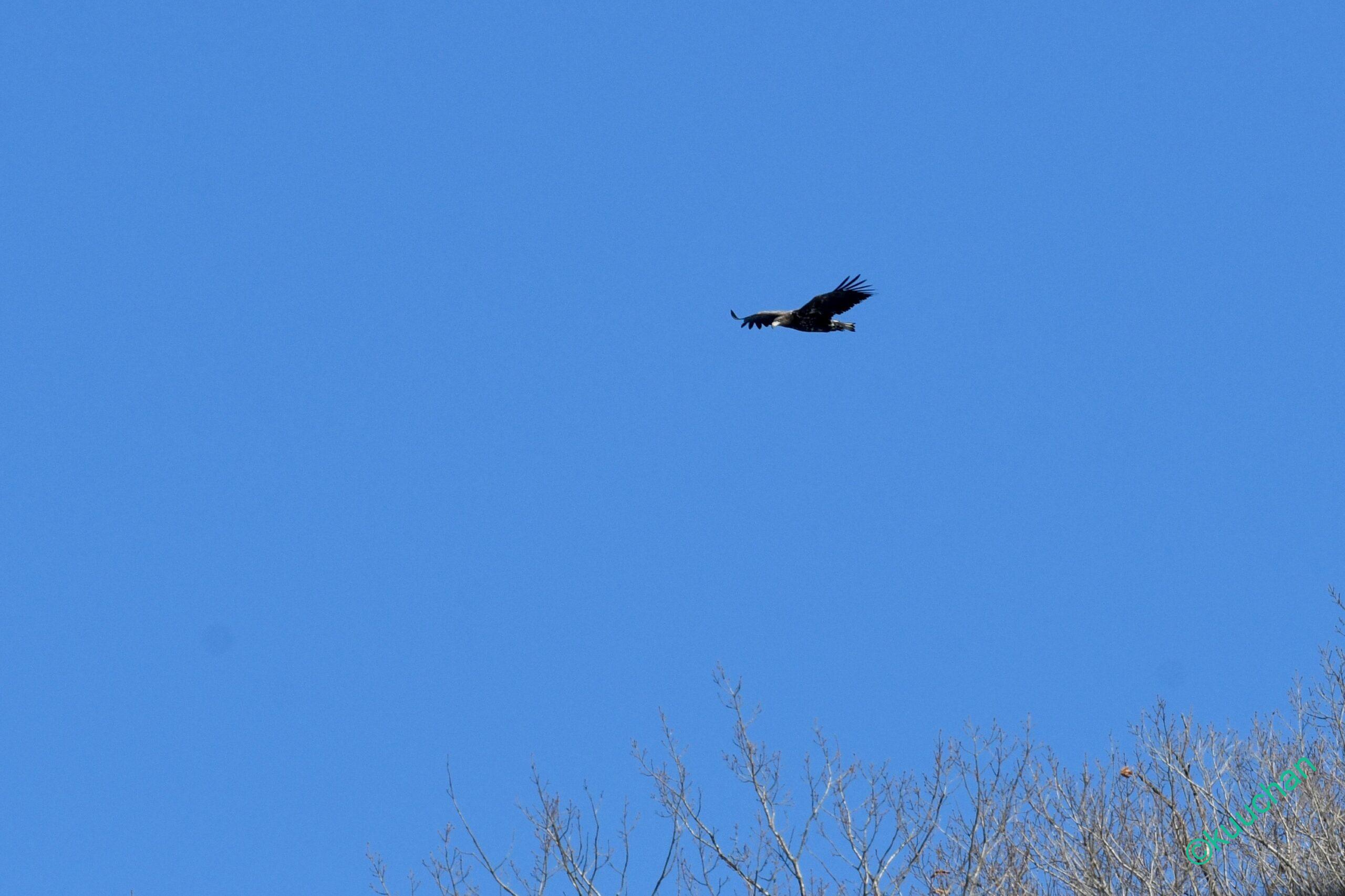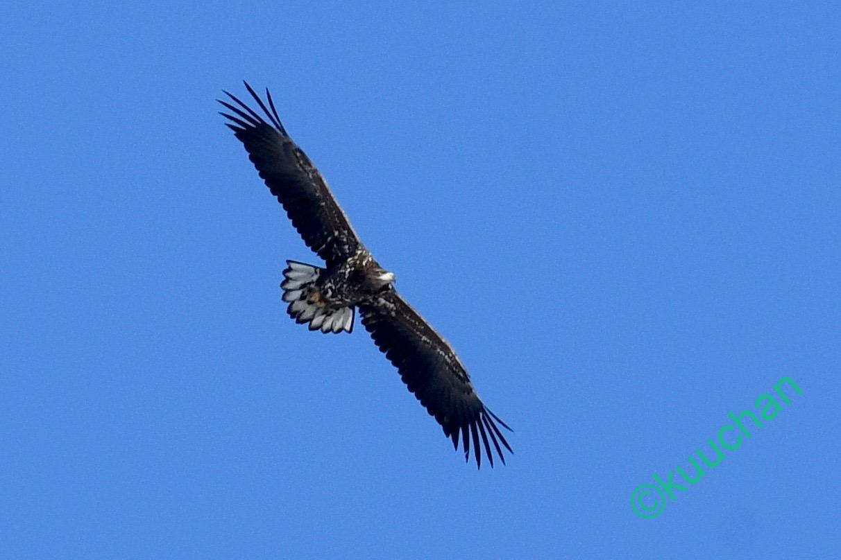この強風の中を幼いオジロワシが飛んできました。大丈夫かい??