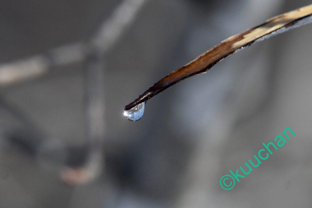 それでもかろうじて残っている場所があり、顔を近づけて見てみると、雫に森が映っていました。