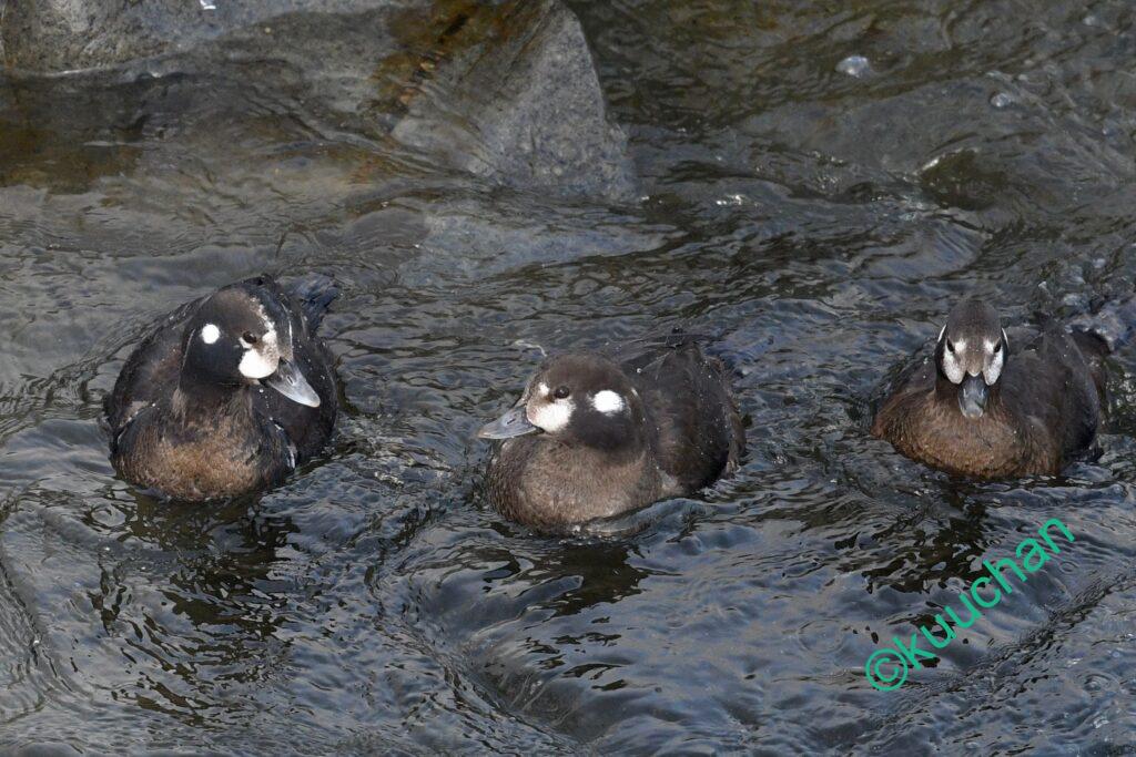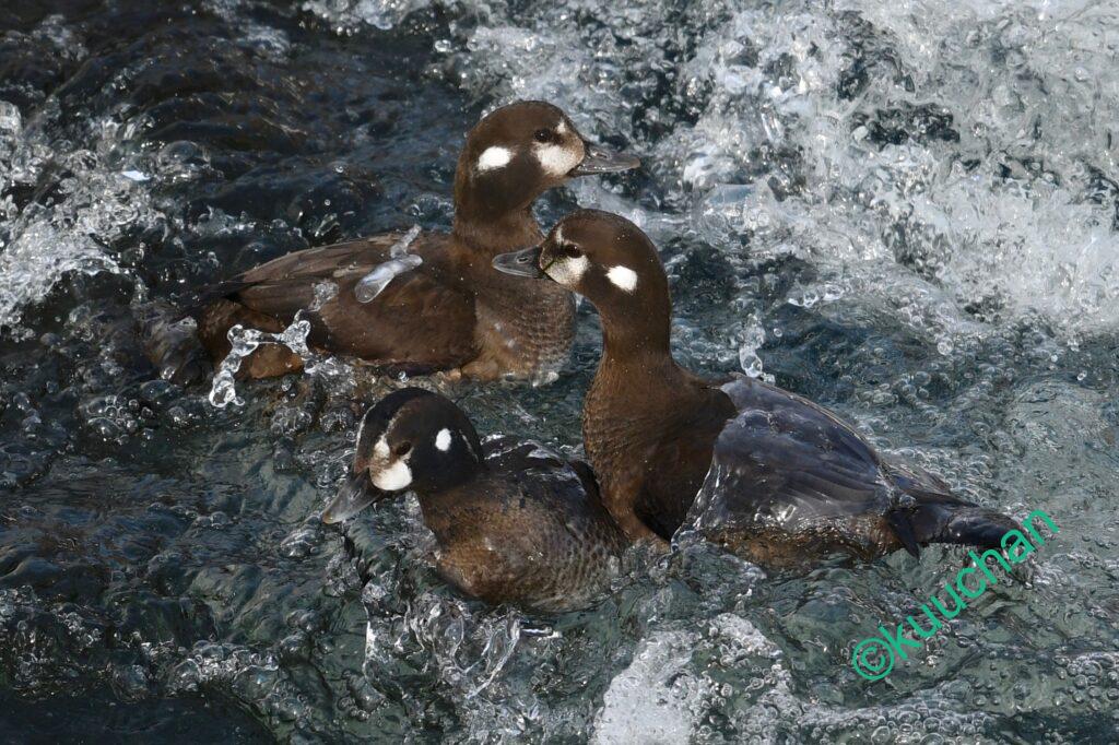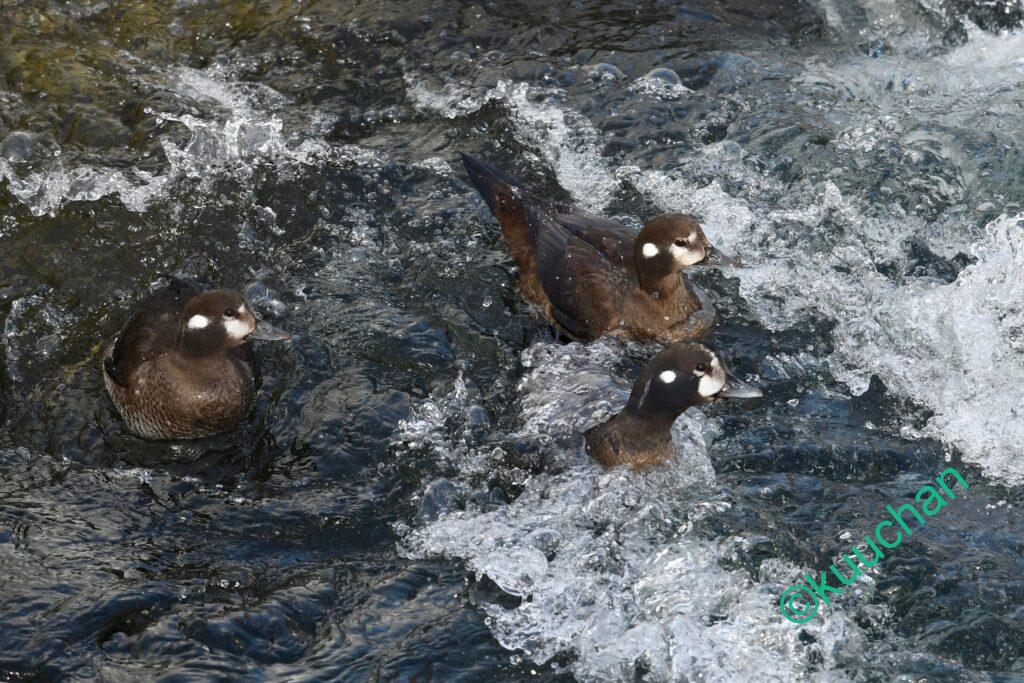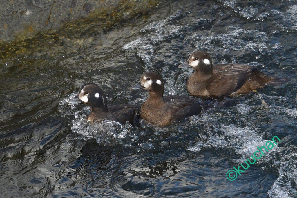 この季節にたびたび出会うシノリガモですが、なぜか毎回メスばかり。