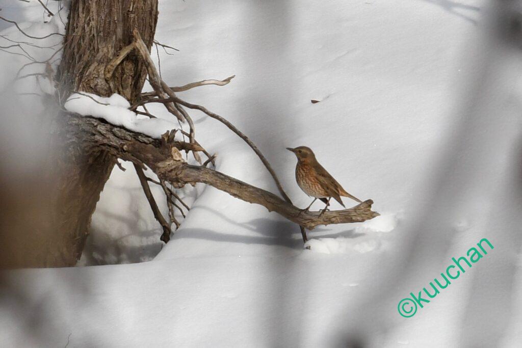 雪が降っていたのに木屑が埋もれていないので、本当についさっきまでいたのでしょう。