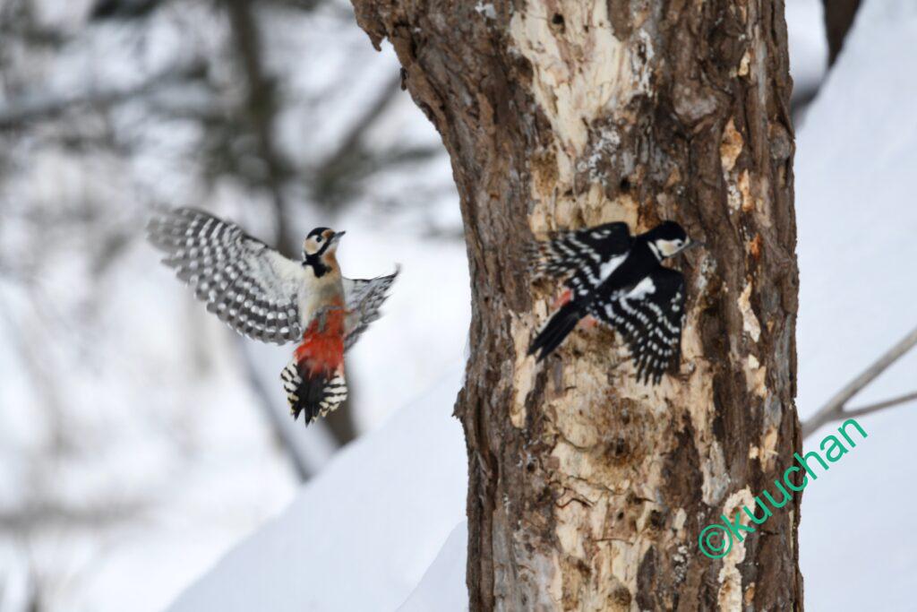 わざわざ敵の後を追うように飛んで行ったクマゲラを呆然と見送ったのでした。