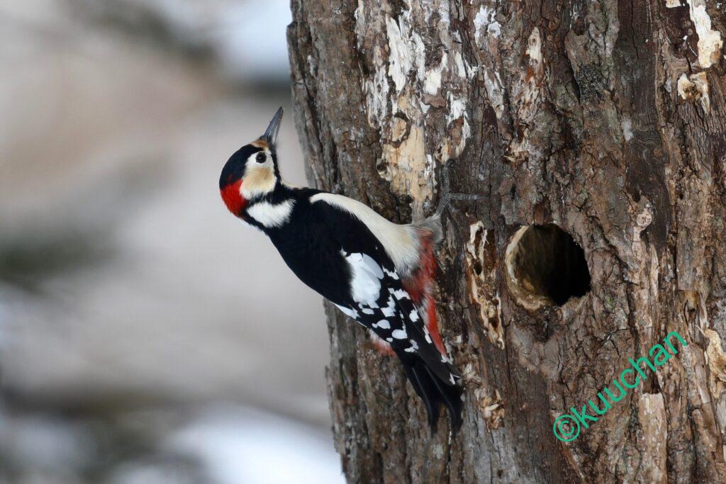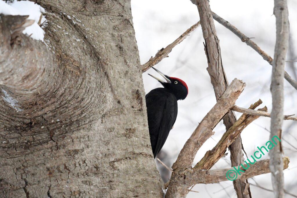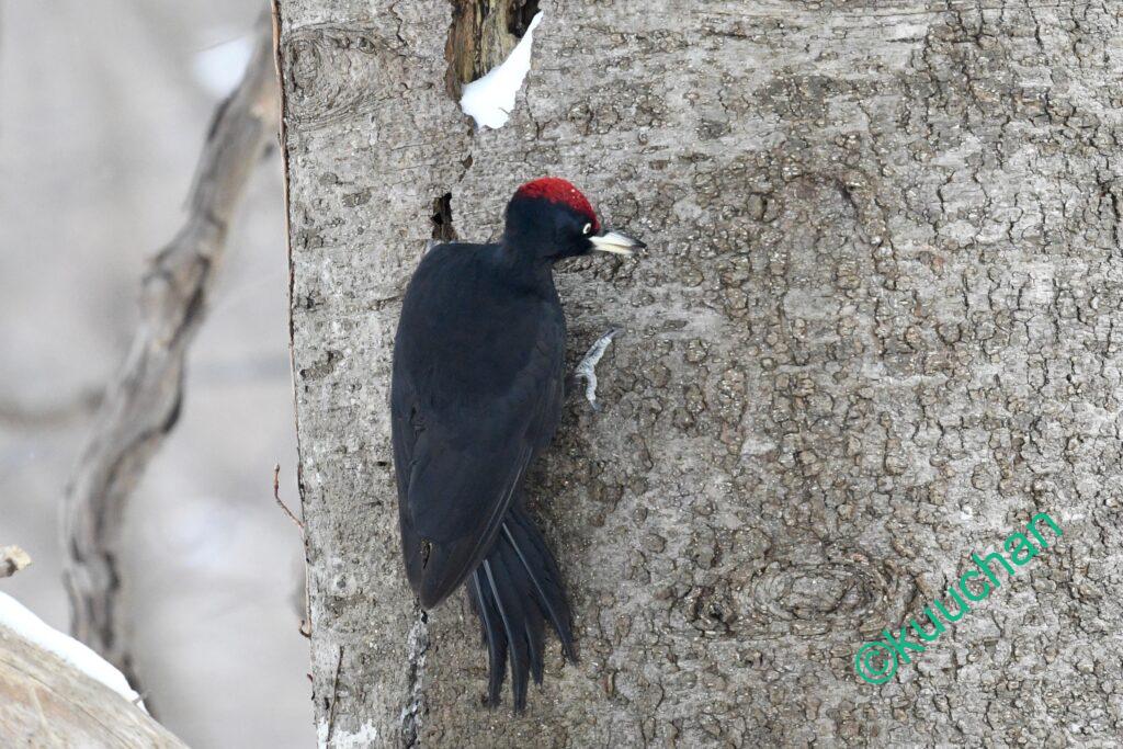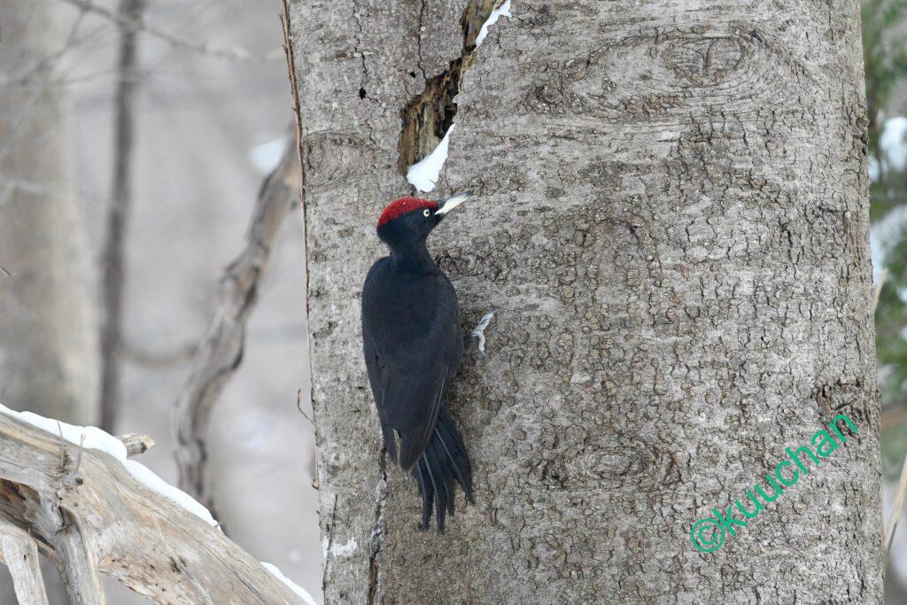 今日は散歩に出てすぐに、クマゲラの新しい食痕があっちにもこっちにもあることに気がつきました。