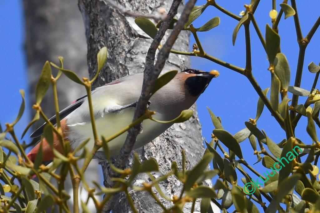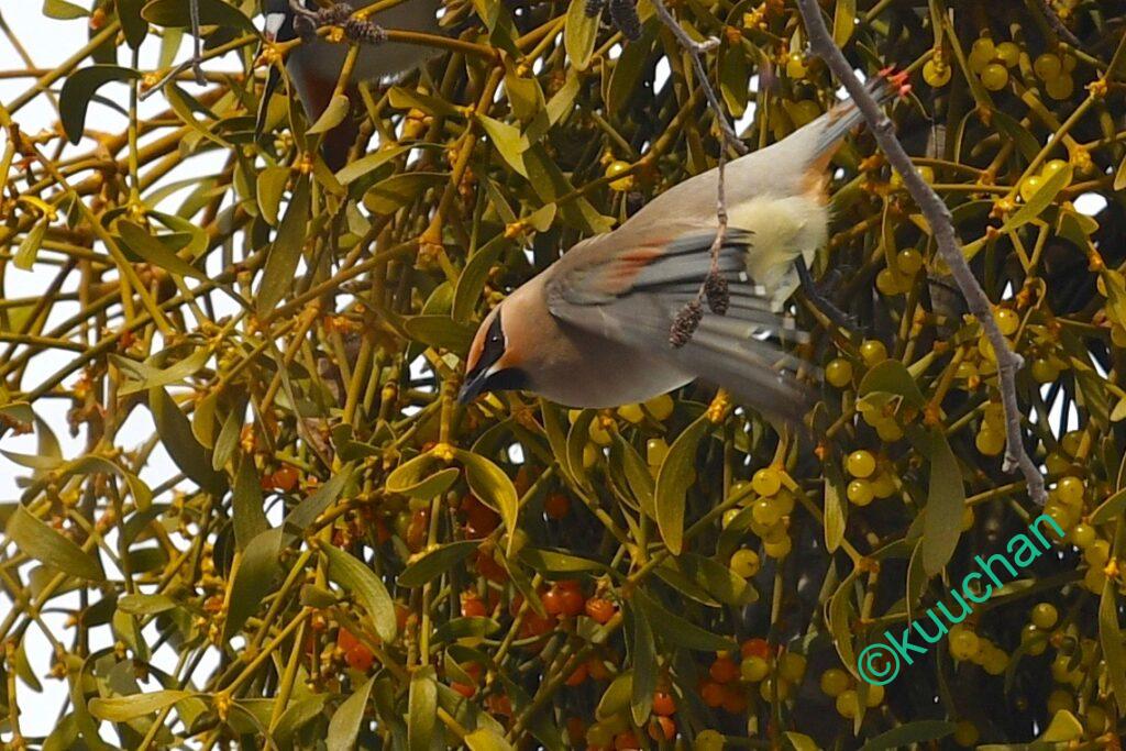 今回は、ヒレンジャクの群れにキレンジャクが数羽混じっているようでした。