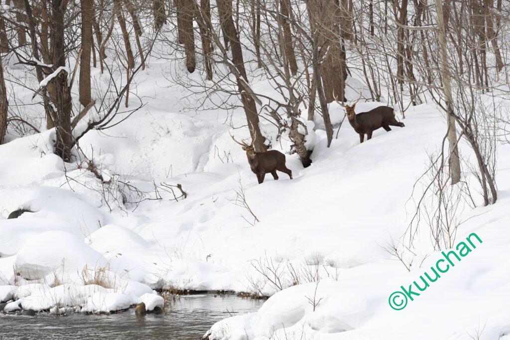 その時、川岸に15頭ほどのシカがいて、餌を食べたり水を飲んだりしていたのですが、ハンター達が川岸に降りて行ったので、まさかと思ったところ、ズキューンズキューンと発砲を始めたのです。