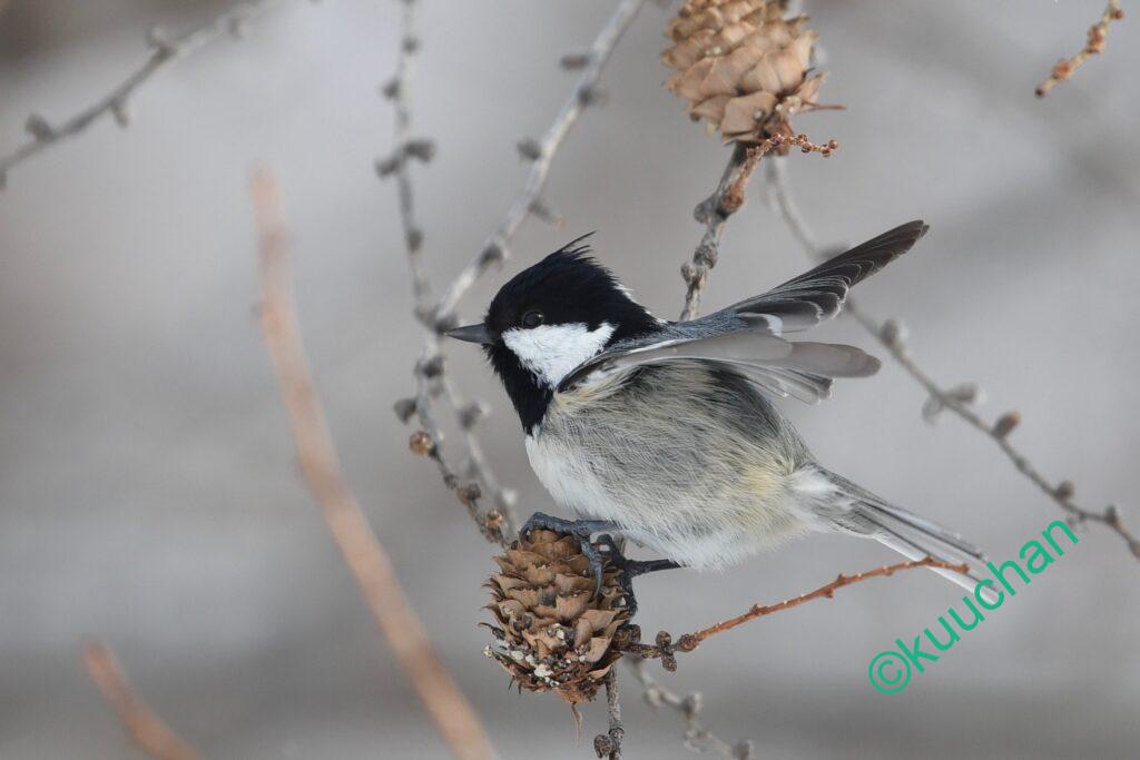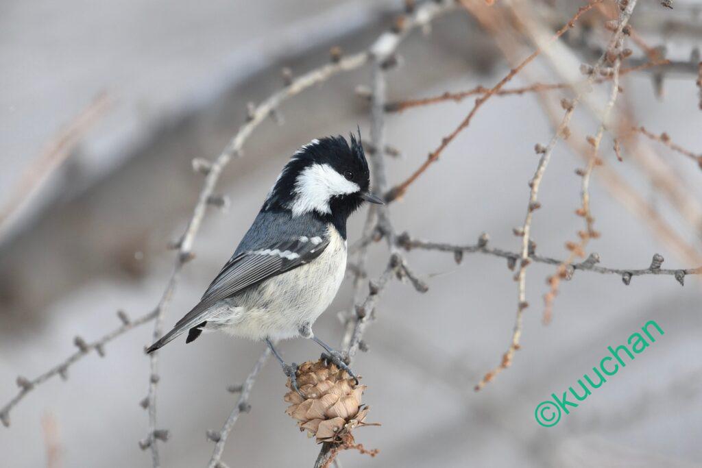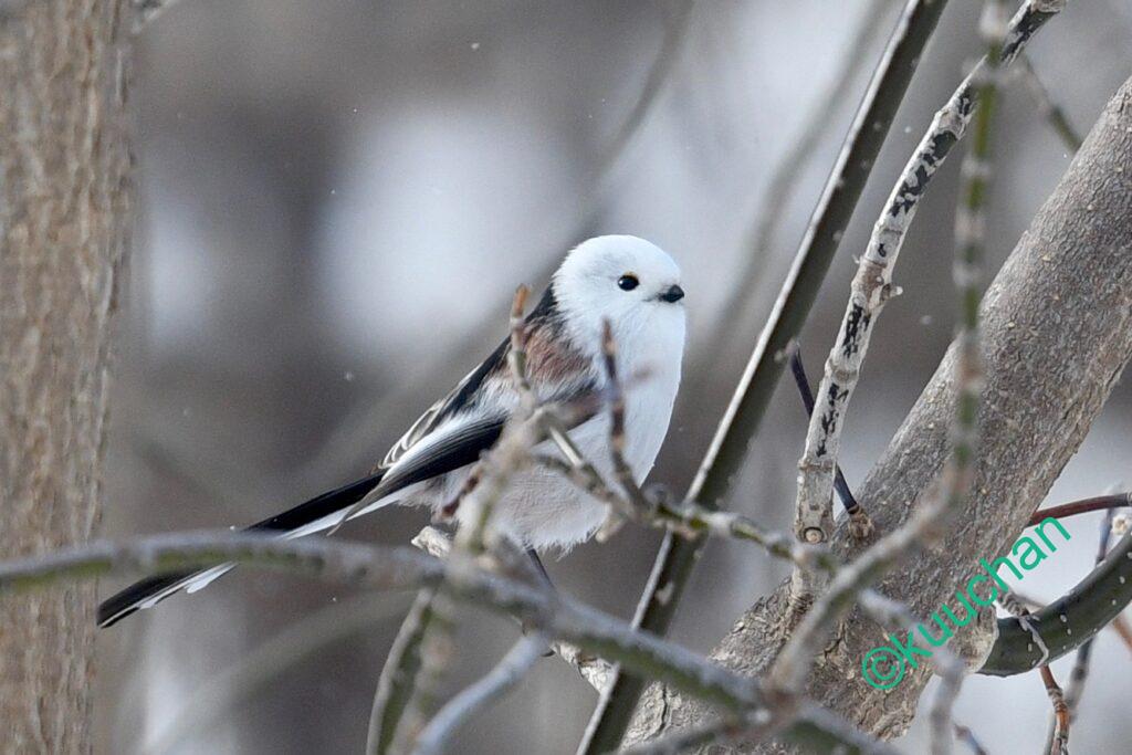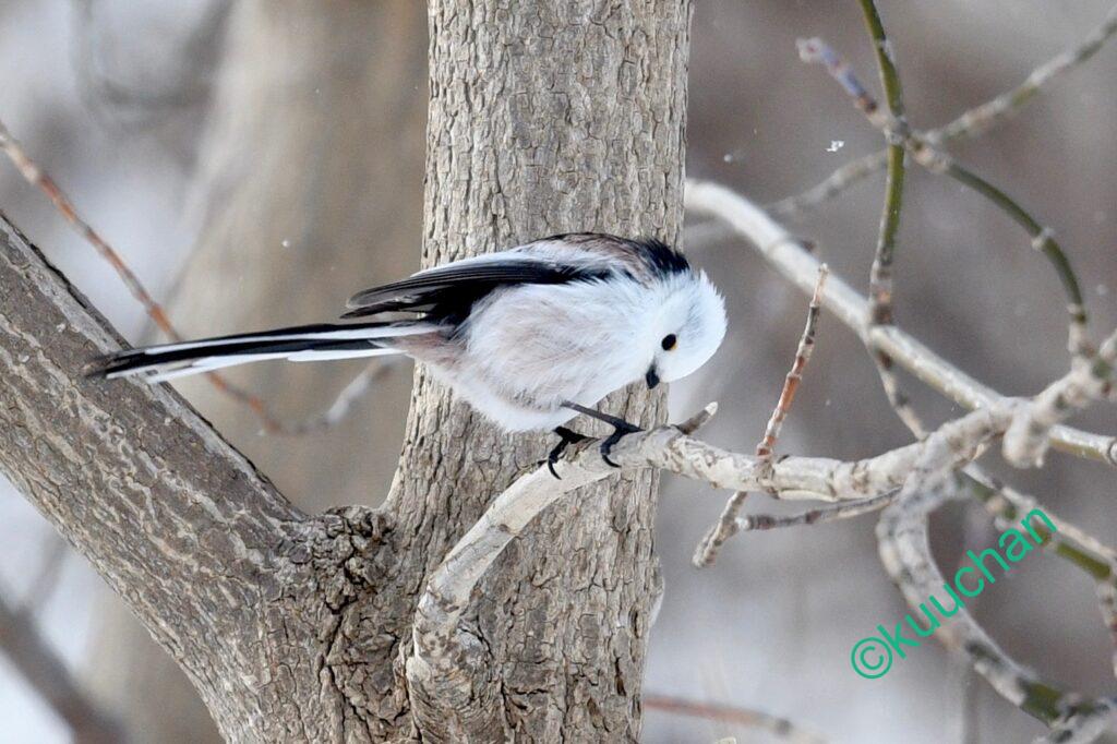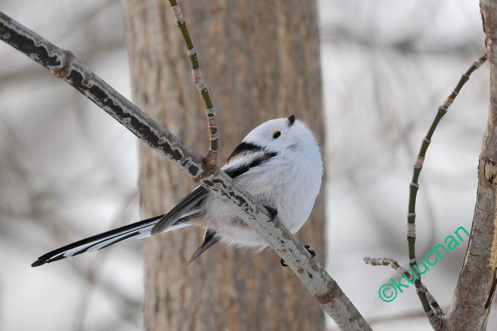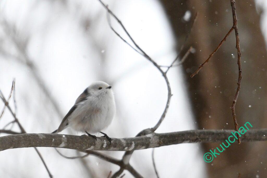 シマエナガは、つがいになったペアが仲良く一緒に行動しています。