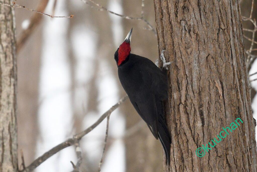 クマゲラの気配を探りながら歩きましたが、聞こえてきたのは山の上からのドラミング(求愛やなわばりの主張のために木をつついて音をだす)。